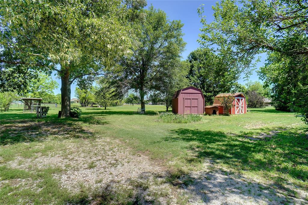 3 SHEDS INCLUDING A LAWN SHED* ONE OF THE SHEDS IS DESIGNATED FOR HOUSING THE IRRIGATION SYSTEM*FULL SPRINKLER SYSTEM AND GUTTERS*PARTIAL WIRE FENCING*HVAC IS APPROXIMATELY 8 YEARS OLD*PARADISE ISD*WASHER & DRYER CONVEY WITH ACCEPTABLE OFFER*