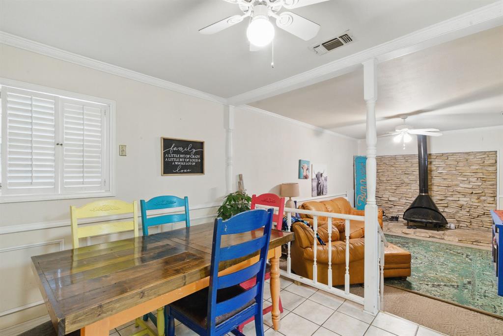 Nestled on a quiet street in the heart of Lipan, this 4 bedroom, 2.5 bath home is full of character and potential. As you walk into the home, you will notice the welcoming feeling throughout. The living room features a unique rock wall and wood burning stove. Step into a kitchen full of personality and warmth! This space features a delightful blend of retro charm and functionality, with crisp white upper cabinets, eye-catching blue lower cabinets, and plenty of storage throughout. There are two separate dinning areas in the home. The primary bedroom is spacious and features rock flooring throughout. The other three bedrooms are a great size with plenty of closet space in each room. Set beneath the shade of mature oak trees, the property offers a spacious backyard perfect for gatherings, gardening, or relaxing in your own peaceful retreat. A standout feature is the large detached 20x30 shop—ideal for hobbies, storage, or even a home business.