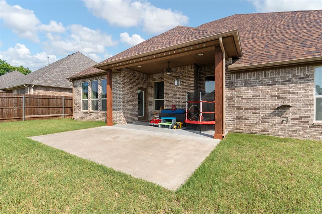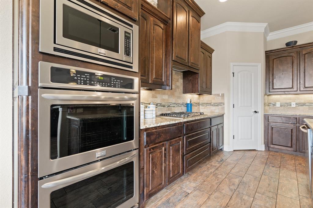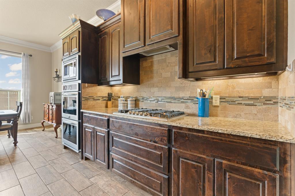 Welcome to this stunning custom home nestled behind a gated entrance at the end of a peaceful cul-de-sac with sidewalks in a beautiful quiet neighborhood—the perfect blend of comfort, privacy, and curb appeal. Location is excellent, minutes from the historic Granbury square, Granbury Lake, shopping and restaurants. Boasting a beautiful stone and brick exterior and wooden garage door, this home is surrounded by mature landscaping and charm from the moment you arrive. Step inside to find wood-look tile flooring, an expansive living room with a gorgeous stone gas fireplace and wood mantel, crown molding, and an elegant large dining room enhanced by beautiful lighting and abundant natural light from oversized windows. Room to host and of your events, the kitchen is a chef’s dream, featuring a double oven, gas cooktop, granite countertops, a center island, and an eat-at bar—ideal for entertaining or everyday living. The owner's suite is generously sized, offering a spa-like en suite bathroom with a garden tub, a large walk-in shower, dual sinks, granite counters, and a massive primary closet. Secondary bedrooms are also spacious with walk in closets, providing comfort for family or guests. Mud room and laundry are separate tucked away behind a barn style door with the ability for enter privately into the primary suite. Primary suite has the ease of direct access into the laundry, mud room and garage. Enjoy evenings on the extended concrete covered patio in the large backyard, perfect for relaxing or hosting gatherings. Cozy up in the winter to your beautiful stone fireplace. This home has it all—style, space, and superior finishes—in a gated, sidewalk-lined community that feels like home the moment you arrive. Unbelievably low tax rate