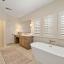 The thoughtfully designed floor plan includes a downstairs primary suite with a rare feature: dual master bathroom suites- ideal for privacy and convenience. Upstairs you'll find two additional bedrooms that share a jack and jill bathroom, perfect for family or guests. Plantation shutters add classic charm and energy efficiency, while three covered patios provide inviting spaces for outdoor relaxing and entertaining.