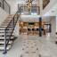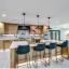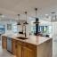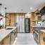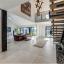 Step inside to soaring vaulted ceilings and an expansive open floor plan, ideal for both daily living and entertaining. The chef’s kitchen is a showstopper, featuring Taj Mahal quartzite countertops, custom rift-sawn white oak cabinetry, a 9-foot island, Wolf and Thermador appliances, and a 105-bottle wine fridge. A sleek dual-sided fireplace elegantly divides the dining and living areas.