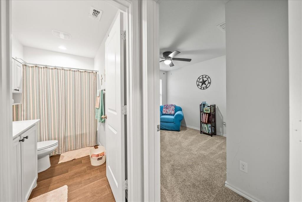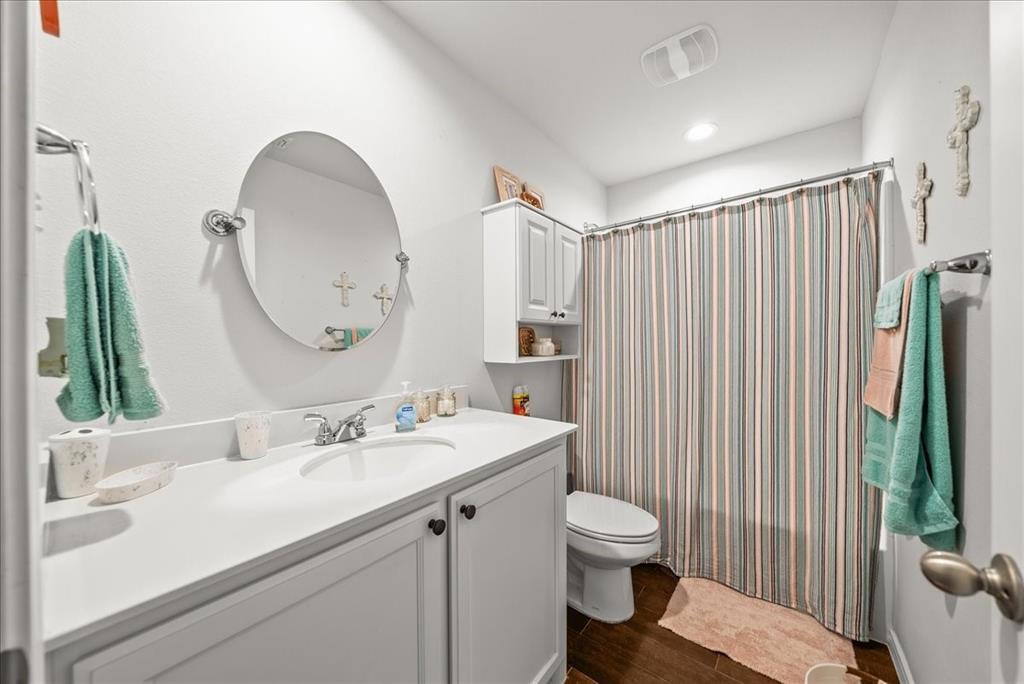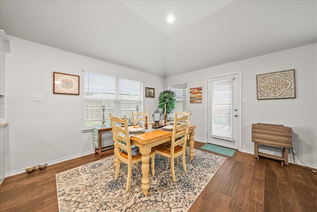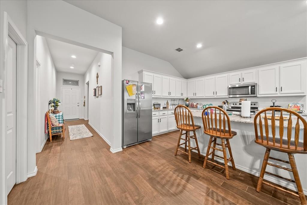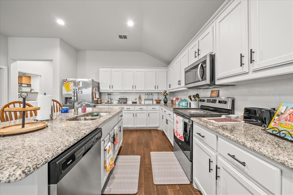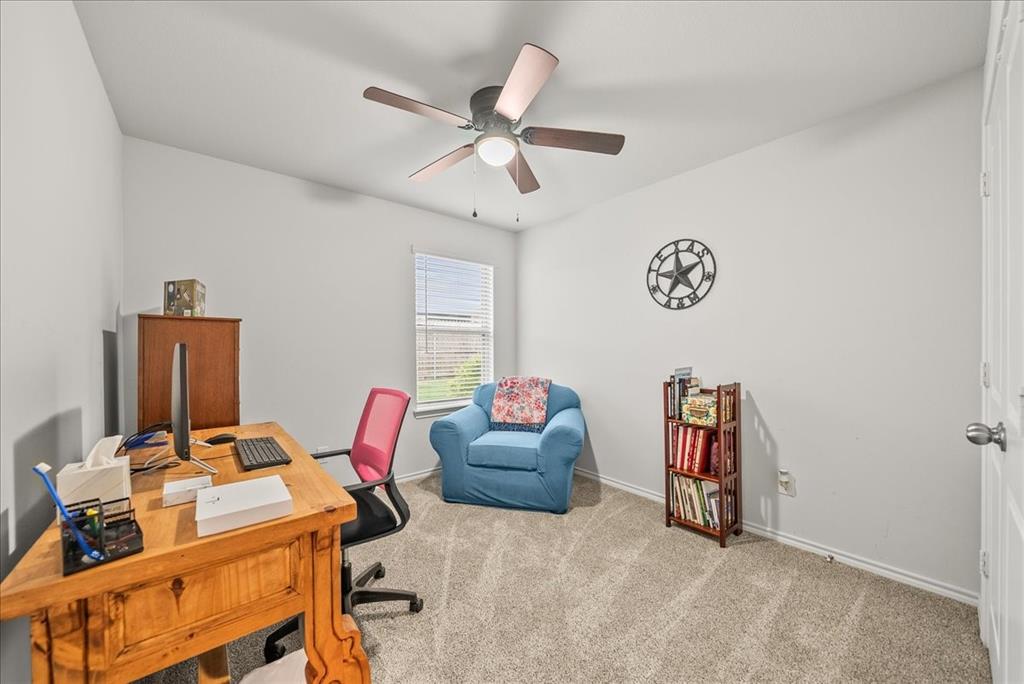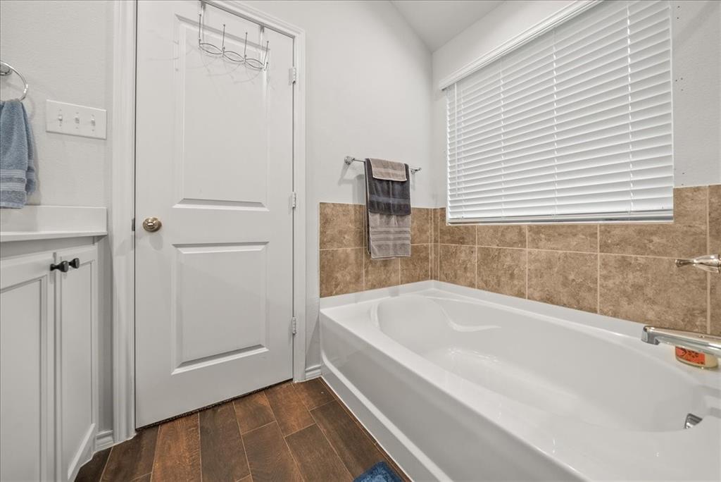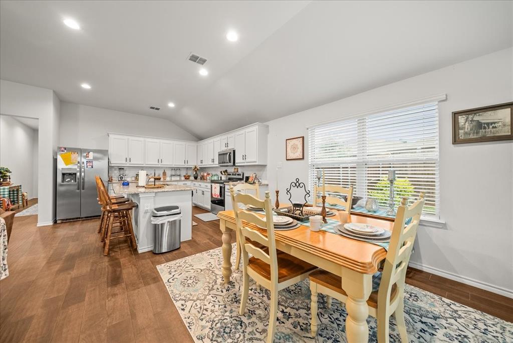 Welcome to this beautifully maintained 3-bedroom, 2-bath home in the desirable Buddy Hardeman subdivision of Justin, TX. Built in 2020, this 1,632 sq ft residence seamlessly blends modern finishes with inviting charm, all nestled on a well-manicured 0.18-acre lot. From the moment you arrive, you'll notice the home's lovely curb appeal featuring a blend of brick and stone façade, lush green lawn, and tasteful landscaping. Inside, an extended entry hall welcomes you with wood-look tile flooring and opens into a bright, spacious living area ideal for relaxing or entertaining. The heart of the home is the chef-inspired kitchen boasting granite countertops, a stylish tile backsplash, white cabinetry, stainless steel appliances, and an oversized island with bar seating—perfect for gatherings and everyday living. The private primary suite offers a peaceful retreat with a dual-sink vanity, a soaking tub, separate shower, and generous closet space. Two additional bedrooms and a full bath provide ample room for guests, family, or a home office. Step outside to your backyard oasis where a covered patio with pergola invites alfresco dining, and the beautifully landscaped yard offers room to play, garden, or unwind under the Texas sky. Additional highlights include a two-car garage, neutral paint tones throughout, ceiling fans, and a thoughtfully designed open floor plan that maximizes space and natural light. This charming home offers the perfect blend of comfort, style, and location—just minutes from local schools, parks, and commuter routes. Don’t miss your chance to make it yours!