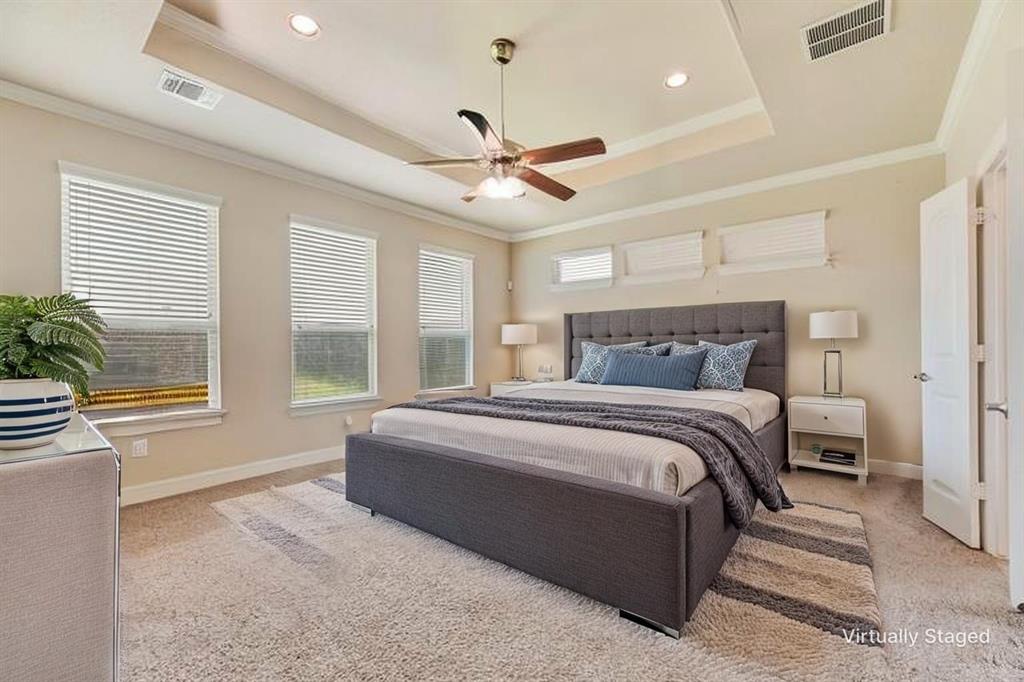 Venture upstairs to find three additional generously-sized bedrooms, designed for comfort and flexibility. The expansive game room serves as a versatile space perfect for family fun or quiet relaxation.