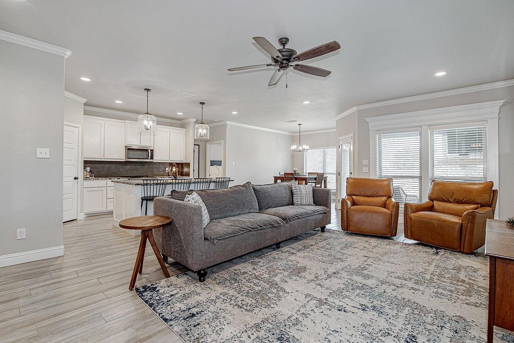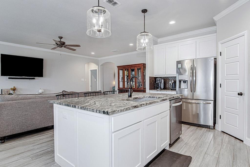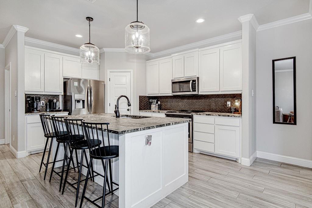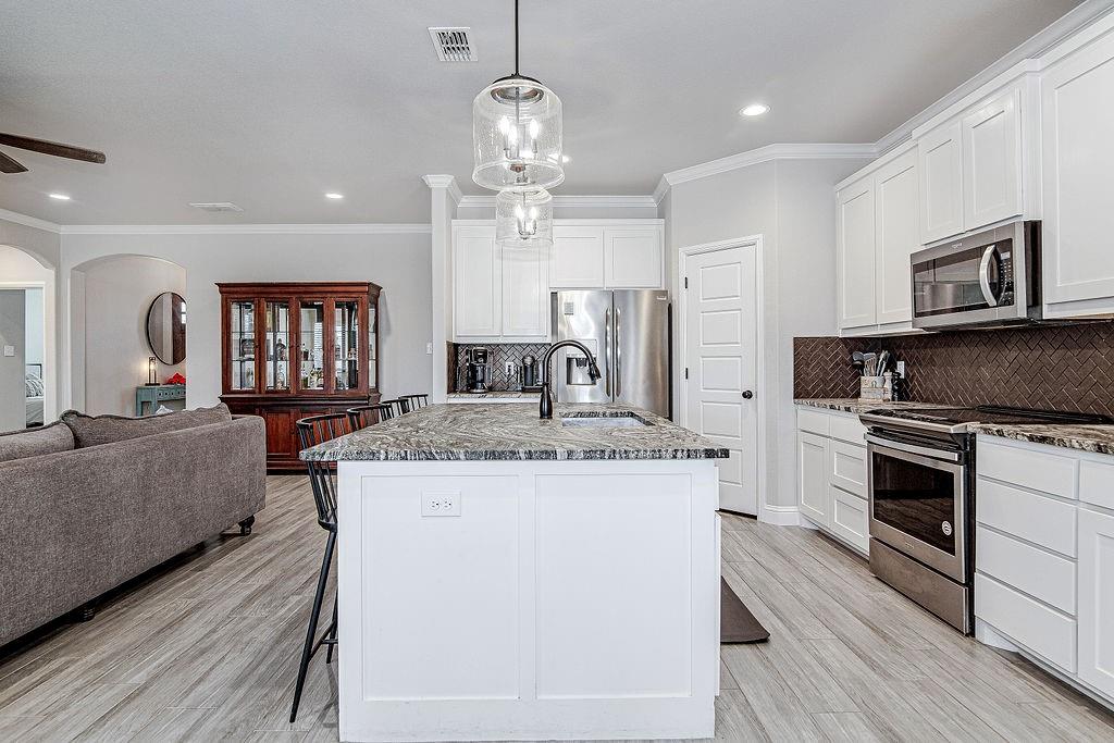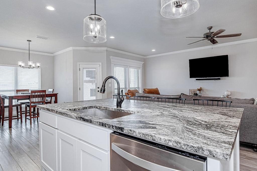 The kitchen is ready for your culinary adventures with a large island, granite countertops, and a breakfast bar perfect for pancakes or polite debates over morning coffee. The adjacent living and dining areas create a seamless gathering space for friends and family.