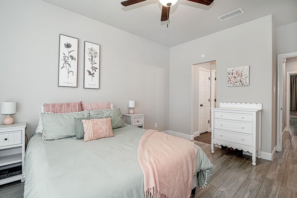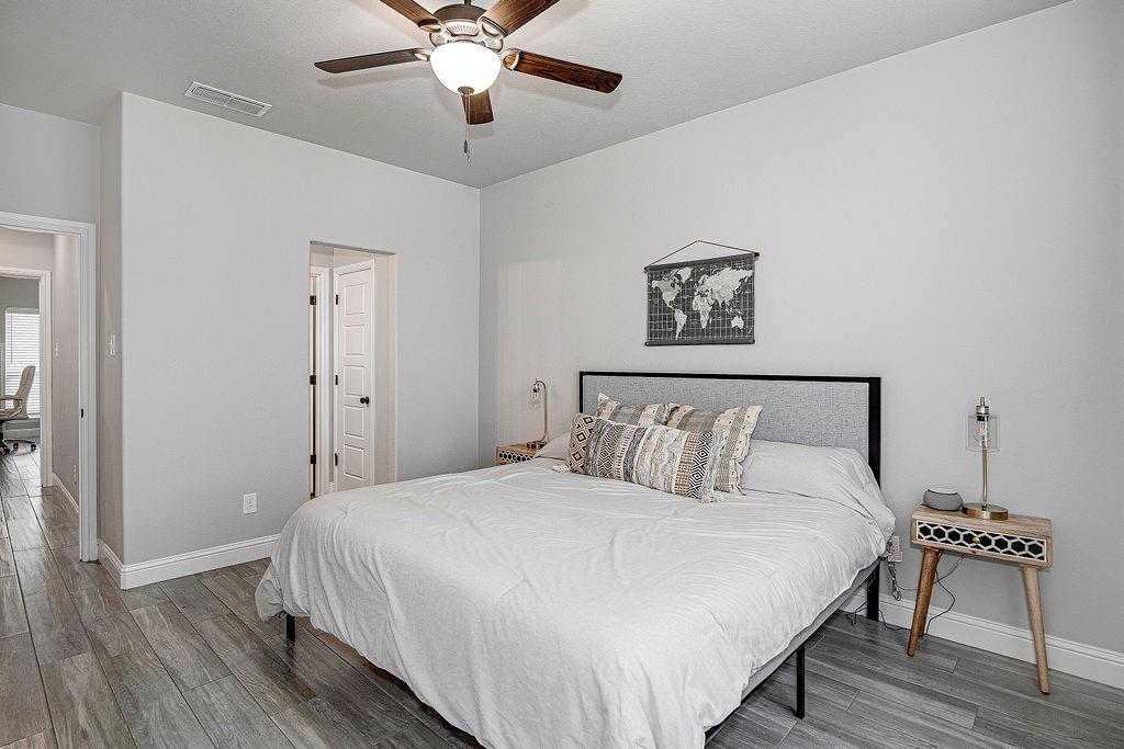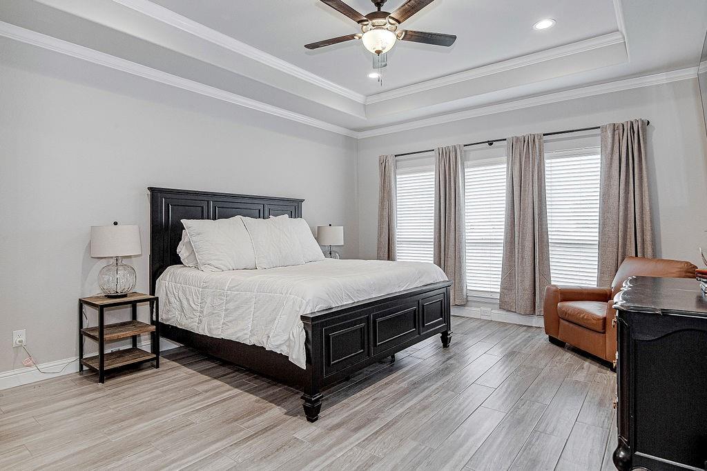 The primary bedroom provides a private retreat with plenty of space to unwind at the end of the day. Two additional bedrooms and a dedicated office offer flexibility to meet your needs, whether it’s a home gym, workspace, or guest quarters.
