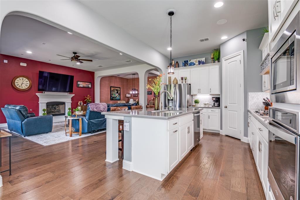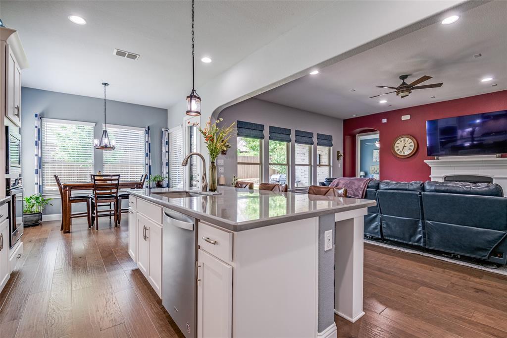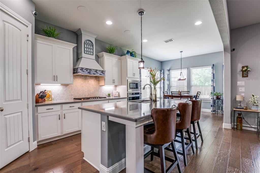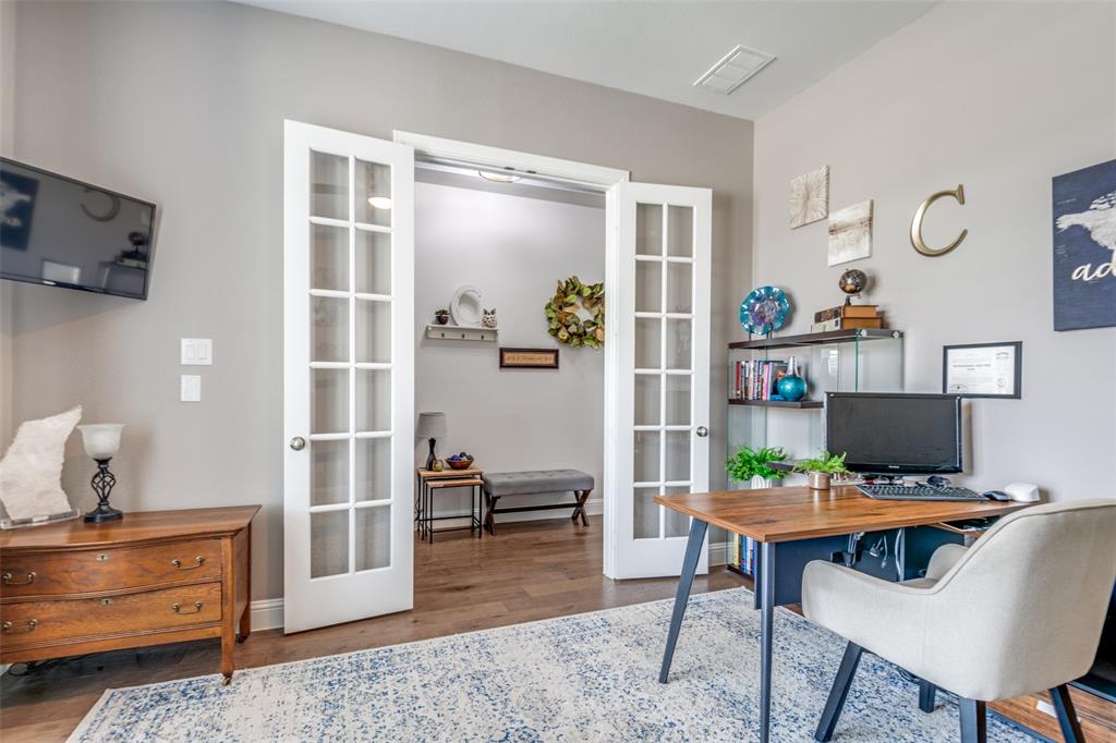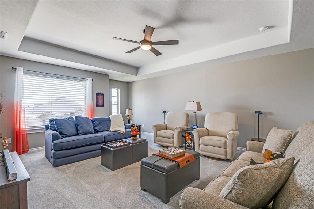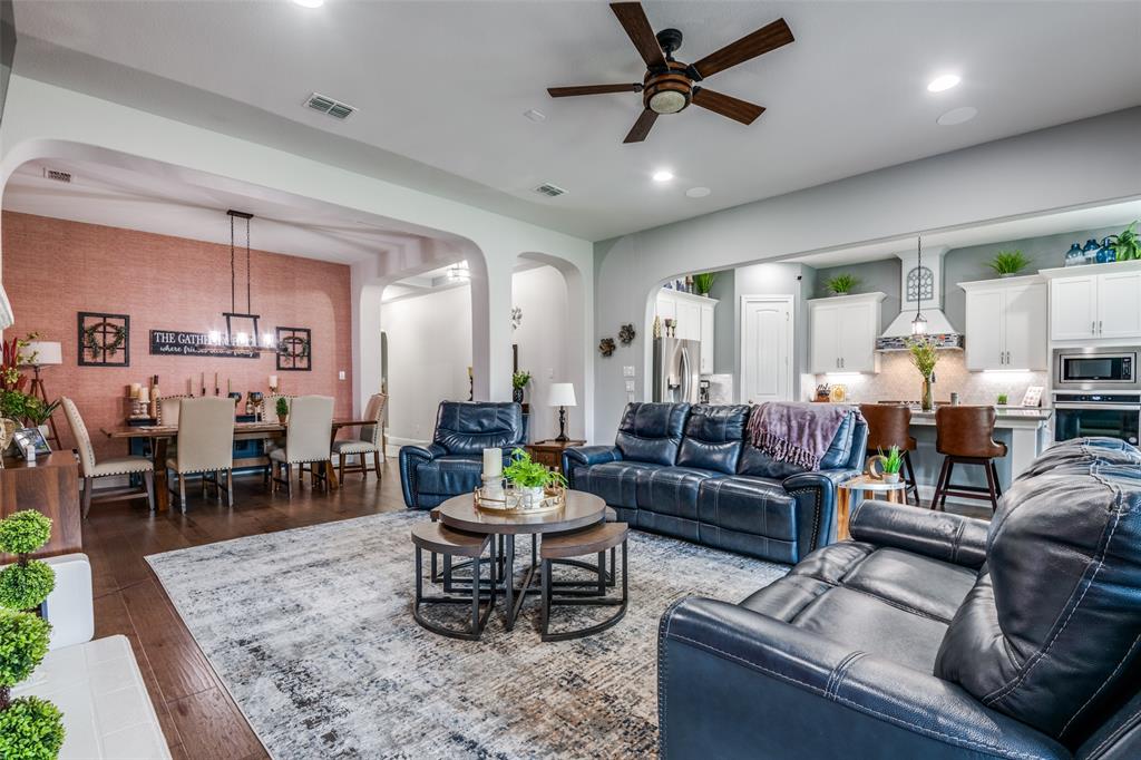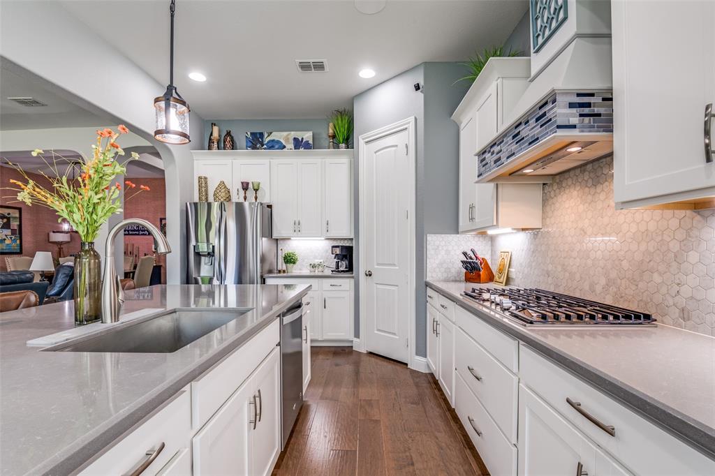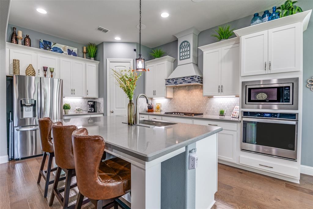 Impressive and meticulously maintained 1.5-story home located in the resort style community of Valencia on the Lake in city of Little Elm. All rooms are located downstairs, except for an upstairs living area featuring a half-bathroom. This residence is move-in ready and boasts numerous upgrades: a tankless water heater, engineered wood floors, quartz countertops, a 5-burner gas cooktop, a large island, and a walk-in pantry. The open floor plan encompasses a spacious primary bedroom with an ensuite & a huge laundry room. Off the garage entry is a half bathroom & mudroom. The tandem garage accommodates larger vehicles and provides additional storage space. The layout is designed for both entertaining and family relaxation. Upon entry, there is an elongated foyer leading to a private study, secondary bedrooms, and full bathroom. The foyer leads to a spacious family room, formal dining room, and an open kitchen equipped with a center island, stainless steel appliances, a corner walk-in pantry, and a breakfast dining area. The secluded primary suite offers a perfect retreat, including a spa-like bathroom and an expansive walk-in closet. The 4th bedroom is a study. Highlighted features include, study, formal dining, game room, luxury kitchen and a covered extended patio. This community offers amenities that include a lakeside community center with a work-out center, swimming complex, ballroom, and sand volleyball and tennis courts. Valencia on the Lake encompasses resort style, lakeside living at its finest. Easy access to Lewisville Lake for fishing & boating.