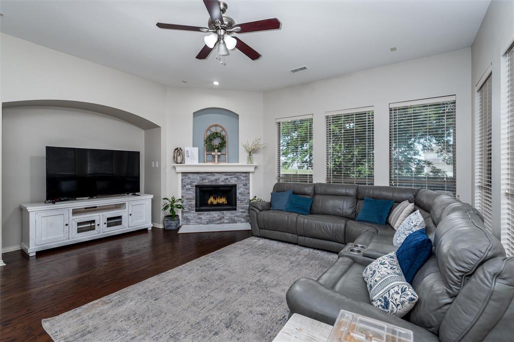 NOW PRICED BELOW TAX ROLLS! MOVE IN READY ON THE BEST LOT IN LIBERTY! Perfectly positioned on a premium corner cul-de-sac lot that backs to a peaceful greenbelt, this spacious one-story home in Liberty offers the kind of lifestyle that’s hard to find and even harder to leave. With 5 bedrooms, 3.5 bathrooms, and over 2,700 square feet, the layout is ideal for both everyday living and entertaining. Inside, you'll find soaring ceilings, luxury plank flooring, and an updated fireplace with gas logs that makes the living room cozy and inviting. The kitchen has been refreshed with an on-trend backsplash, updated lighting, an oversized island, and tons of cabinet space. The washer, dryer, and fridge are all included, so your move-in day just got easier. The private primary suite is a true retreat, featuring a beautifully updated bathroom with double sinks, a soaking tub, and a massive walk-in closet. The secondary bedrooms offer plenty of flexibility for guests, office space, or that home gym you keep talking about. Two tankless hot water heaters (including one brand new!) mean long showers are never a problem. Have an ELECTRIC VEHICLE? This home features an EV charger in the garage for convenience!