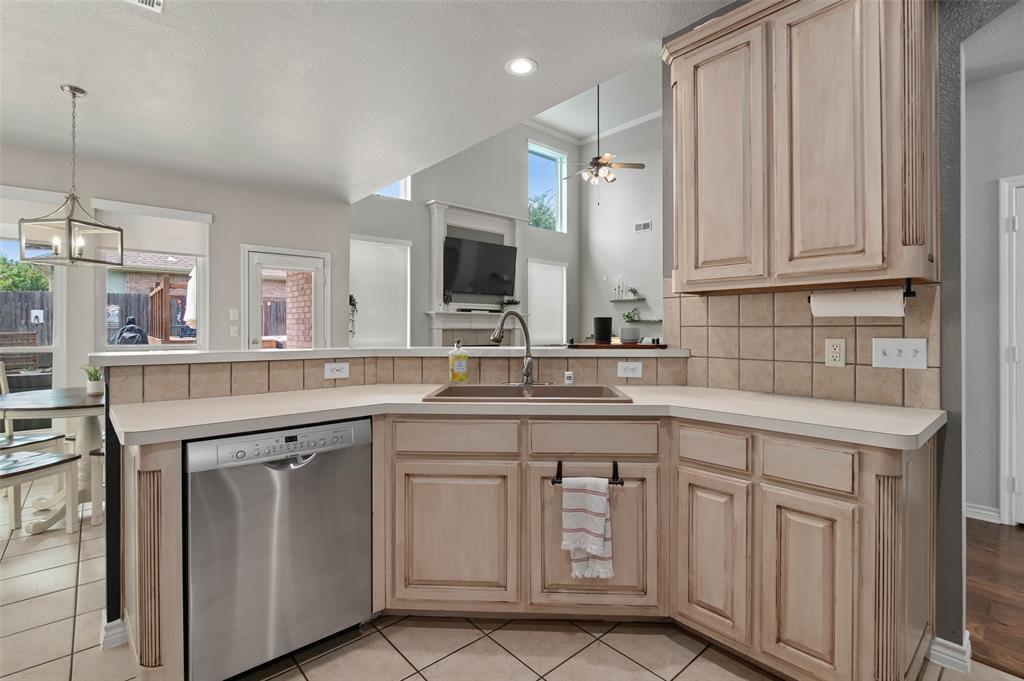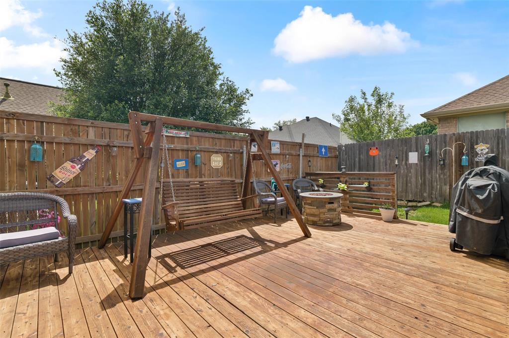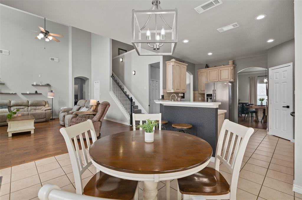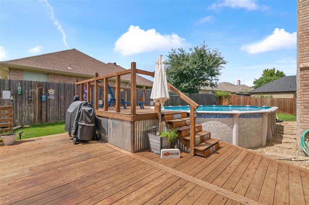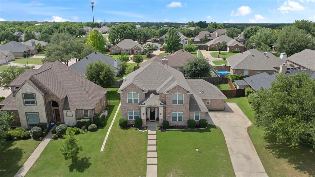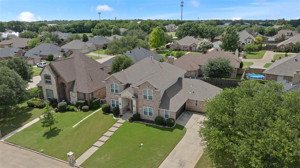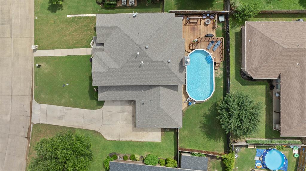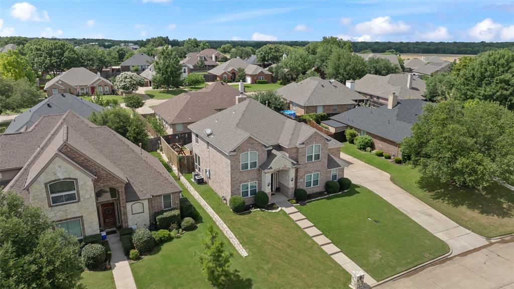 Welcome to your new home in one of the friendliest, most established neighborhoods in the Justin and Northlake areas. Designed with both comfort and entertaining in mind, this home blends open spaces, modern updates, and inviting touches throughout. Step inside to a flexible formal dining or living space off the foyer. The heart of the home is the dramatic two-story living room, where a wall of windows fills the space with light, complete with custom shades for beauty and privacy. Picture cozy evenings by the gas log fireplace, movie nights with built-in surround sound, and gatherings with family and friends. The open kitchen makes everyday living easy, with 42-inch cabinets, a breakfast bar for quick bites, and a bright nook perfect for coffee mornings or casual meals. Your private downstairs primary suite is a true retreat, complete with dual sinks, a relaxing garden tub, and a separate shower to refresh and unwind. Upstairs, you’ll find a spacious game room loft for family fun or a home office, plus three well-spaced bedrooms that offer privacy for everyone. Step outside to a backyard built for making memories. Host summer BBQs on the large deck, cool off in the well-built above ground pool, or gather around the outdoor gas fire pit in the winter. All fully fenced for privacy and peace of mind. This home has the style, warmth, and neighborhood feel you’ve been searching for. Schedule your showing today!