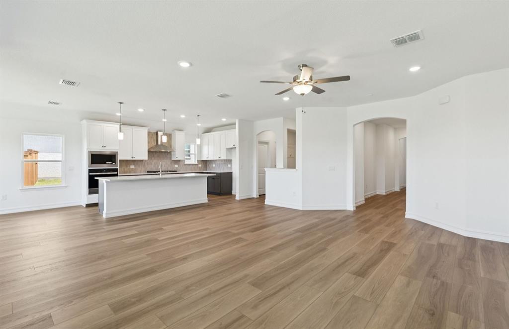 Available August 2025, this home has everything you need and more. The floor plan boasts an expansive flex space, covered patio, and an open concept gathering room providing ample space for work and relaxation. The sunlit gathering room, with large windows invites natural light, while the expansive kitchen shines with premium finishes, including quartz countertops, and built-in stainless-steel appliances.