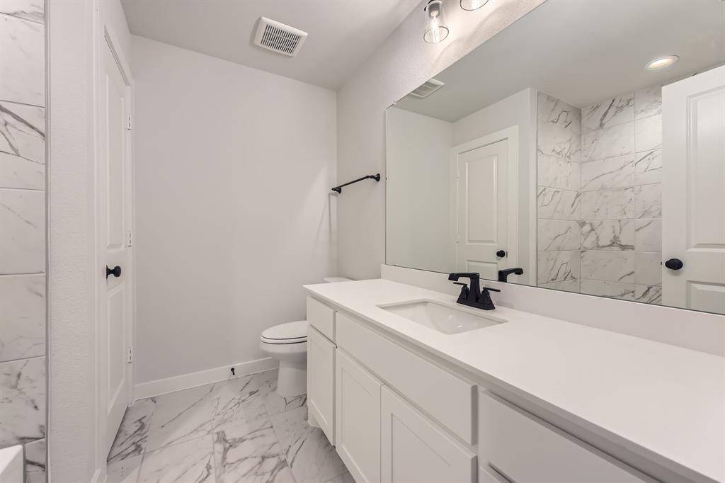 This gorgeous all brick home features 4 bedrooms, 3 bathrooms, study, game room and media room offering plenty of room for living and entertaining. As you step inside, you will love the open floor plan that brings together the living, dining and kitchen areas, creating a welcoming space for gatherings. The kitchen is a dream with its stainless steel appliances, custom cabinetry, upgraded quartz countertops and lighting. The first floor main bedroom features an en suite bathroom with separate vanities and an oversized shower with detailed tile work. A second bedroom downstairs provides the perfect guest room or a bedroom for a young child. The additional second floor bedrooms and bathroom are spacious and versatile, providing flexibility for your lifestyle needs. Enjoy family time in the game room which completes this spacious home. Upgraded wood flooring begins at the front door and continues through the entry, down the hallway into the family room, kitchen and dining area.