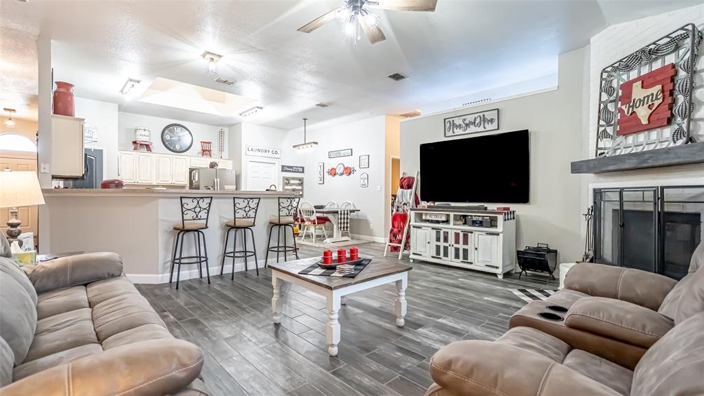 Back on market due to buyer financing! Their loss- your GAIN! NO HOA!!! Welcome to your dream home! This delightful 3-bedroom, 2-bathroom gem is located in a fantastic area and perfectly combines modern comforts with a warm, inviting feel. As you walk in, you’ll immediately feel the brightness from the spacious open floor plan, bathed in natural light. The chic wood-look ceramic floors throughout the main spaces make for easy upkeep, so you can spend more time enjoying life! You’ll love the lovely kitchen, complete with a generous island, a handy butler’s pantry, and a skylight that brings in even more sunshine. It opens up to the cozy living area, where a beautiful fireplace creates the perfect atmosphere for gatherings. Need some extra space? The front room is great for an office, and the flex room can be whatever you need it to be! Retreat to the roomy primary suite, which boasts an ensuite bath and a walk-in closet that you’ll adore. Plus, there’s additional space that works well as an office or play area! The location is just fabulous, too! You’re close to Chisholm Trail, making it super easy to pop into Fort Worth for dining and shopping in under 10 minutes. This is truly an amazing opportunity to turn this beautiful house into your home sweet home. Come see it today!
