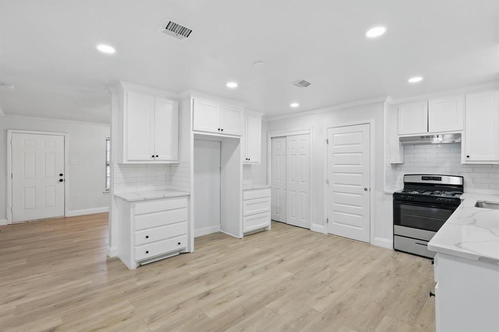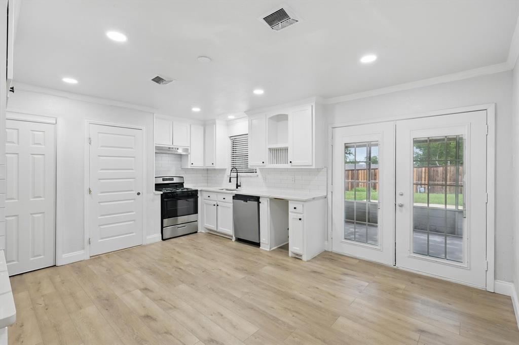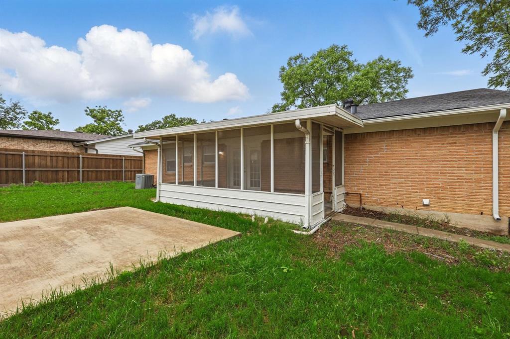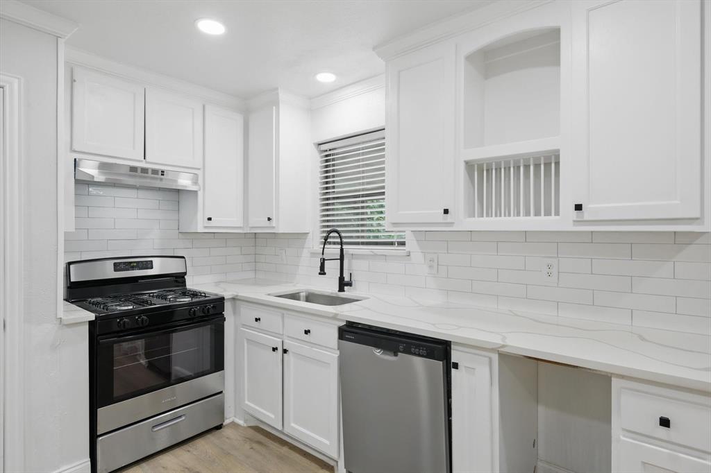 Welcome to this beautifully remodeled single-story home nestled in a prime Mesquite location. With 3 spacious bedrooms and 2 full bathrooms, this move-in-ready gem offers comfort, style, and convenience. Step onto the cozy covered front porch, perfect for relaxing evenings. Inside, you're welcomed by a bright and airy living room, where new luxury vinyl plank flooring extends seamlessly throughout the home. Fresh, modern paint enhances every room, creating a crisp and inviting atmosphere from the moment you walk in. The eat-in kitchen is a standout feature, showcasing sleek built-in elements, fresh white cabinetry, a stylish subway tile backsplash, and brand-new quartz countertops. Recently updated with a new oven and dishwasher. A brand-new AC unit—inside and out—ensures year-round comfort and energy efficiency. The primary suite includes a private full bath and ample closet space, while the two additional bedrooms are generously sized and share a well-appointed second bathroom. Enjoy outdoor living with double doors leading to a covered and enclosed back patio, perfect for year-round use. The large, fenced backyard features an open patio area—great for grilling, outdoor dining, or adding your favorite outdoor furniture. Located within walking distance to Galloway Elementary, and offering easy access to major highways, this home is close to dining, shopping, entertainment, and just a short drive from Lake Ray Hubbard. This is a must-see property that won’t last long—schedule your showing today!