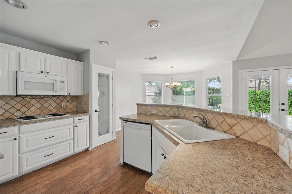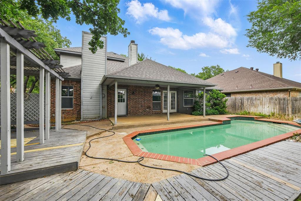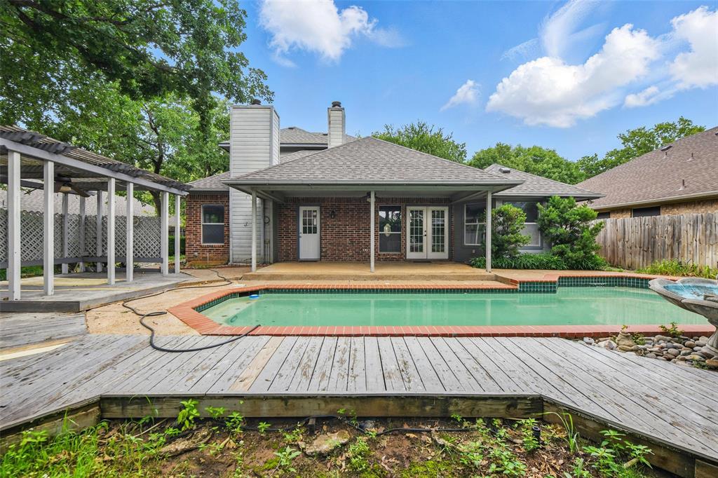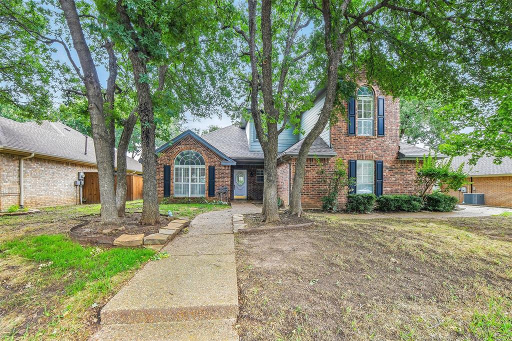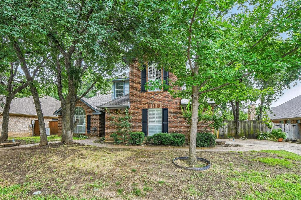 This beautiful two-story brick home is ideally located just minutes from TX-26 S, with convenient access to nearby shopping and dining. Offering 3 bedrooms and 2.5 baths, the home features a thoughtful layout designed for both comfort and entertaining. On the main level, you'll find a formal dining room and an open-concept living room and kitchen combination, complete with vaulted ceilings and a cozy fireplace. The kitchen includes a breakfast bar, a sunny breakfast nook, a pantry, and easy flow for everyday living. Also on the main level are a utility room and a conveniently placed half bath. The primary ensuite is a private retreat, located on the main floor and featuring its own fireplace, access to the backyard, a walk-in closet, double vanity, soaking tub, and separate shower. Upstairs, a spacious loft with built-in cabinetry offers a flexible space that can easily function as a bar or entertainment area. Two additional bedrooms and a full bathroom complete the upper level. Out back, enjoy a covered patio overlooking a fenced backyard and a sparkling in-ground pool—perfect for summer relaxation or entertaining guests. Discounted rate options and no lender fee future refinancing may be available for qualified buyers of this home.