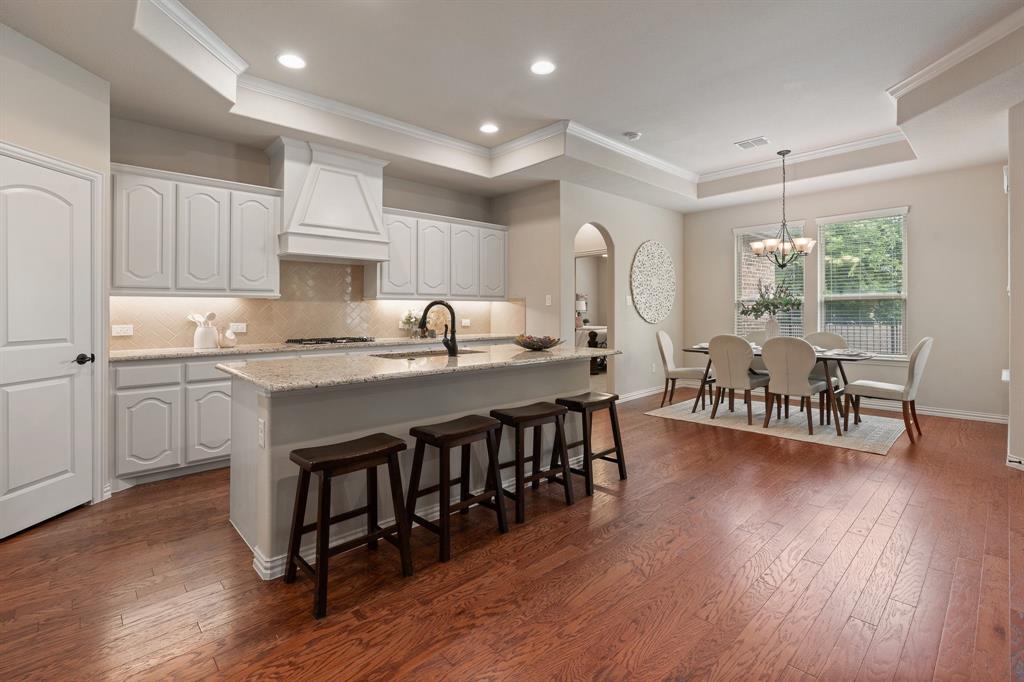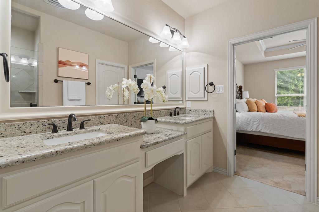 Welcome to easy, low-maintenance living in this beautifully appointed 2-bedroom, 2-bath home located in the highly sought-after Ladera Mansfield Condos, a gated 55+ community designed for active adults who want more out of everyday life. Inside, the open-concept layout offers seamless flow between the living, dining, and kitchen areas. Wood floors add warmth and character, while the gourmet kitchen serves as the heart of the home—featuring granite countertops, a gas cooktop, stainless steel appliances, and classic white cabinetry. Whether you're cooking for yourself or entertaining guests, this space delivers both style and function. The primary suite is tucked away for privacy and comfort, offering a large bedroom, a luxurious ensuite bath with dual vanities and a spacious tiled shower, and an oversized walk-in closet complete with built-in shelving. A second bedroom and full bath provide space for guests, hobbies, or a home office. Step outside to your covered patio, ideal for enjoying fresh air without the hassle of yard work. But what truly sets this home apart is the incredible community lifestyle that comes with it. The HOA takes care of all exterior and lawn maintenance, giving you more time to enjoy everything Ladera Mansfield has to offer. Spend your days at the resort-style pool, get moving in the fitness center, or challenge friends to a game on the pickleball or bocce ball courts. The community activity center offers a packed calendar of social events, clubs, and gatherings, making it easy to connect with neighbors and stay engaged. Enjoy peaceful strolls along over two miles of scenic walking trails, or simply relax knowing you're part of a vibrant, well-maintained, and secure neighborhood. From recreation to relaxation, this is a community designed to support the lifestyle you’ve been looking forward to. Discover comfort, convenience, and connection in one of Mansfield’s premier active adult communities—where every day feels like a getaway.