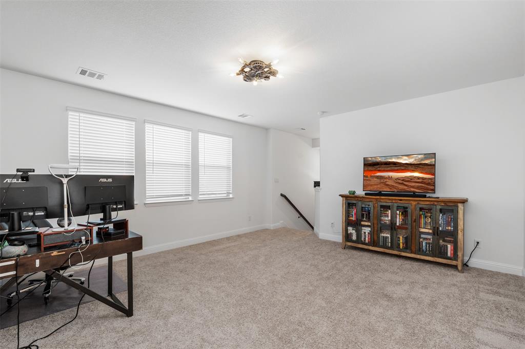 Welcome to this beautiful Chesmar construction that is ready for you to call home. It offers 3 bedrooms, 3 full bathrooms, an upstairs flex room, and a study that can be used as a 4th bedroom. The kitchen is a chef's delight with ample storage and large island, pull out trash drawer and 42-inch cabinets with built-in appliances. Enjoy the covered back patio with an included gas drop for future kitchen. Family room has high ceilings and gas fireplace . Contemporary color scheme, upgraded flooring, art niches, tankless water heater, bricked front porch. (Home builder in 2023 included 3-year heating and cooling energy use guarantee by Environments for Living.) All information deemed reliable, but must be verified by the buyer and agent.