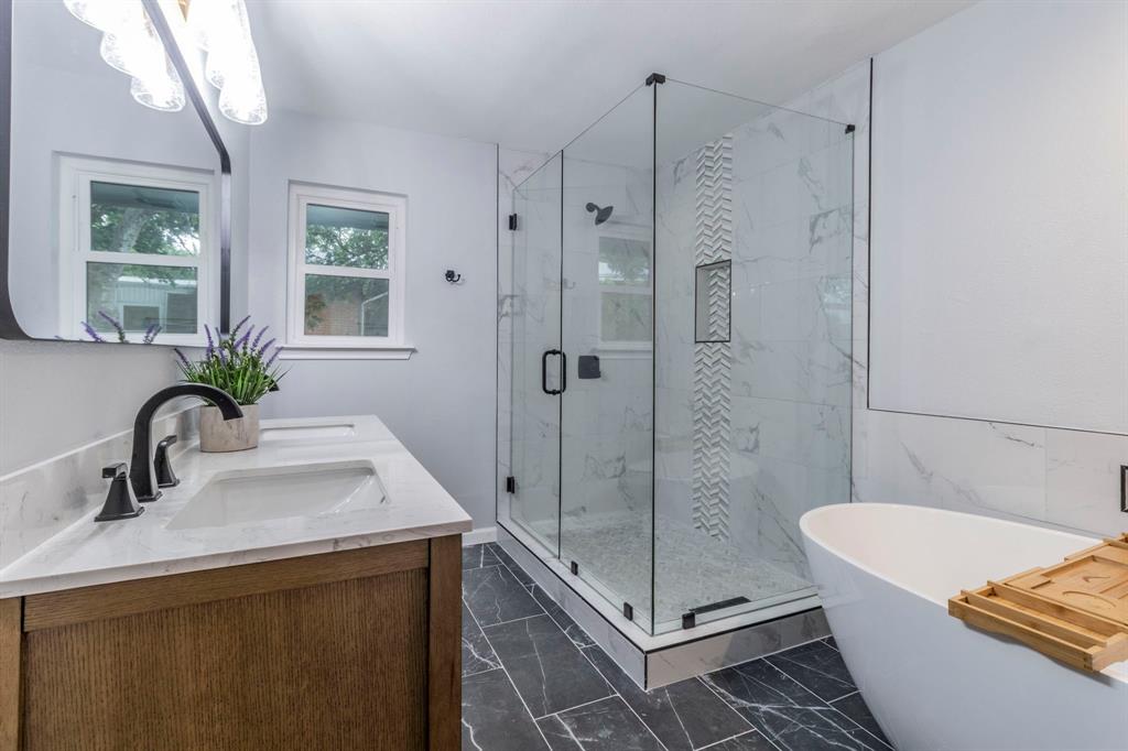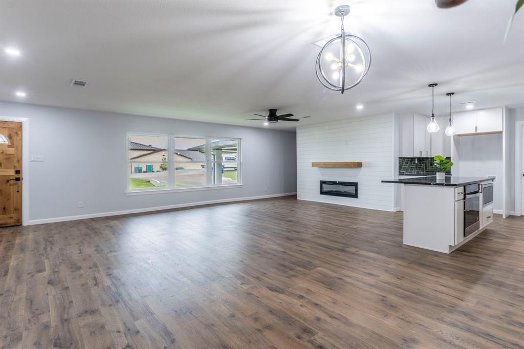 ** Motivated Seller Bring all offers** Welcome home to this spacious MOVE IN READY house. Talk about curb appeal, this one is a BEAUTY. From the moment you walk through the front door you will be delighted to see a beautifully remodeled open floor plan with abundant space for everyone in your family. The kitchen has an excellent layout with brand new appliances that features an Induction cooktop, custom cabinets and a stunning backsplash with Quartz counters. Off of the kitchen you will see a large walk-in pantry with storage galore. Behind the dining area you will find a spacious office or playroom with a set of barn doors to accent and an exit to the back yard. The three bedrooms in the home are a great size with one of the secondary bedrooms having a half bath attached. Between the secondary bedrooms is a large bathroom with tons of storage featuring a linen closet, large vanity and beautiful tub shower. If you head over to the other side of the home past the built in electric fireplace you will see a large utility room with access to have electric or a gas dryer as well as washing machine and still plenty of room left for storage. When you walk into the primary suite you will be greeted with a spacious seating area with numerous layout opportunities and room for all of your clothes, shoes and bags in the walk-in closet. The main bath is a treat with a free standing soaking tub to relax in and a beautiful walk-in shower to behold. This home has been extensively remodeled from the brand new roof, windows, plumbing, electrical and includes a transferable warranty for the foundation work. One last perk is the extra large shed with electricity. Dont let the built date fool you because this has been fully remodeled, come check it out.