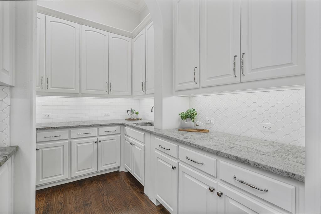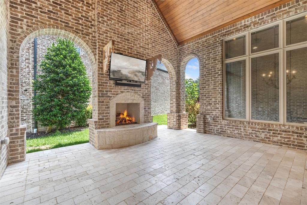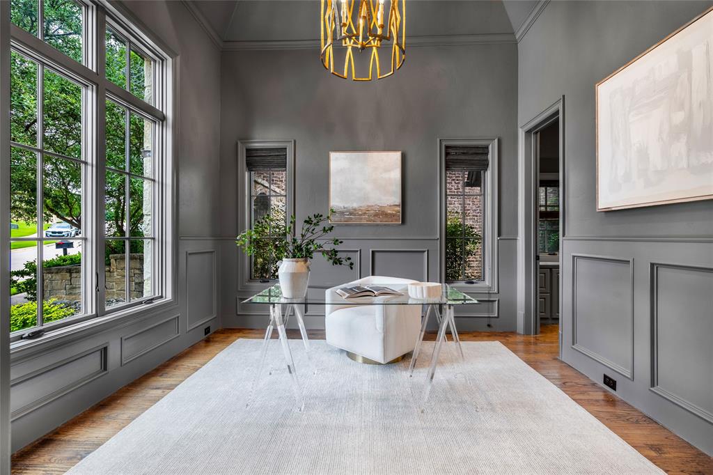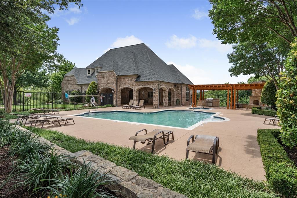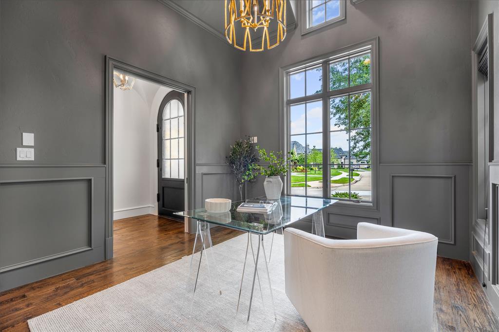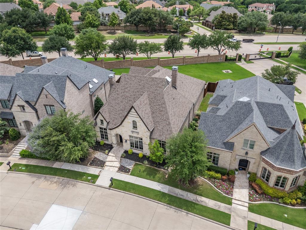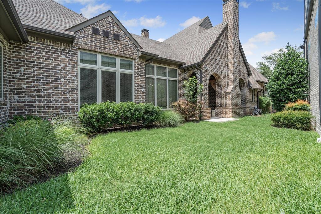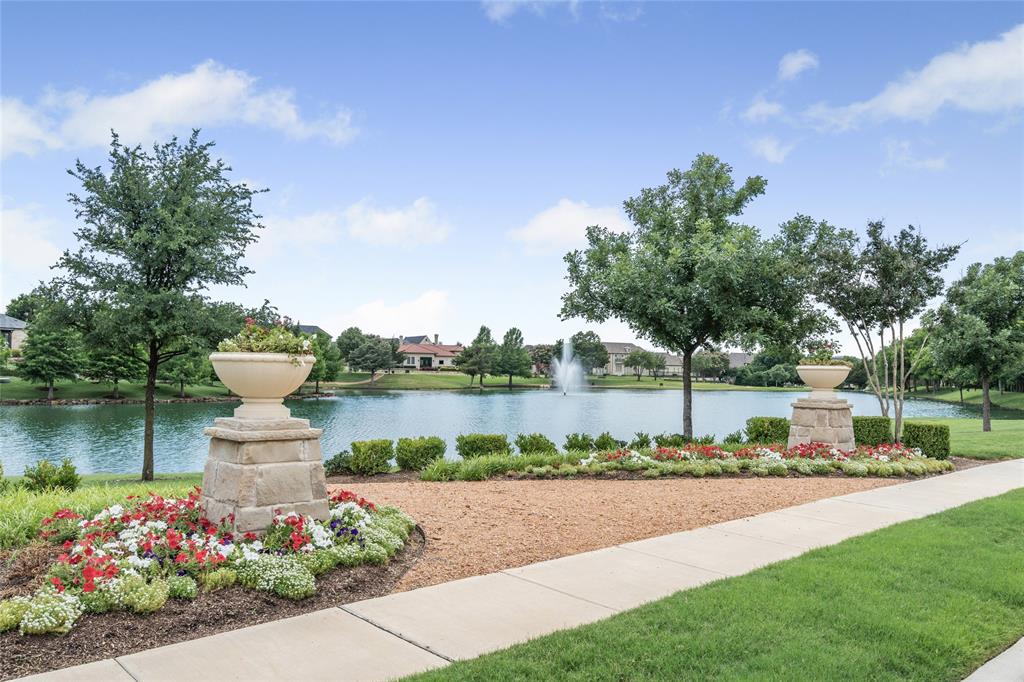 Experience upscale living in prestigious Normandy Estates. This luxury single-story home features hand-scraped hardwood floors, custom crown molding, and vaulted ceilings. It includes three bedrooms—each with a private bath—plus a beautifully designed home office featuring wainscoting and built-in cabinetry, comfort meets style. Bright, open spaces with large windows fill the home with natural light. A large open gourmet kitchen featuring commercial grade Thermador appliances with ample storage and a walk-in pantry! Step outside to a travertine patio with a cozy brick fireplace and architectural arches opening to the side yard. European elegance and exquisitely manicured grounds for carefree living and entertaining; including a clubhouse, pool, fitness center, jogging path, and lake with a fishing dock. All in a gated and guarded community close to Legacy West and with convenient access to the Dallas North Tollway and Highway 121. *Previous buyer terminated due to uncertain job relocation verification.*
