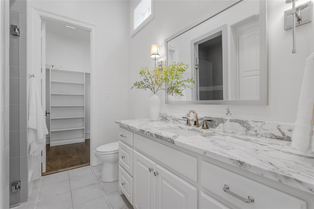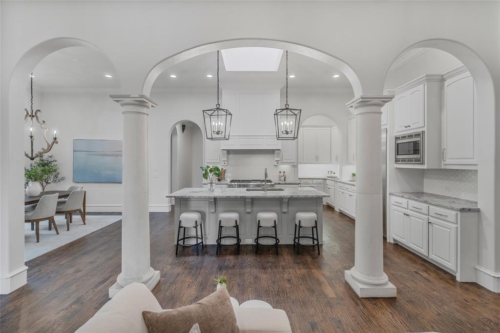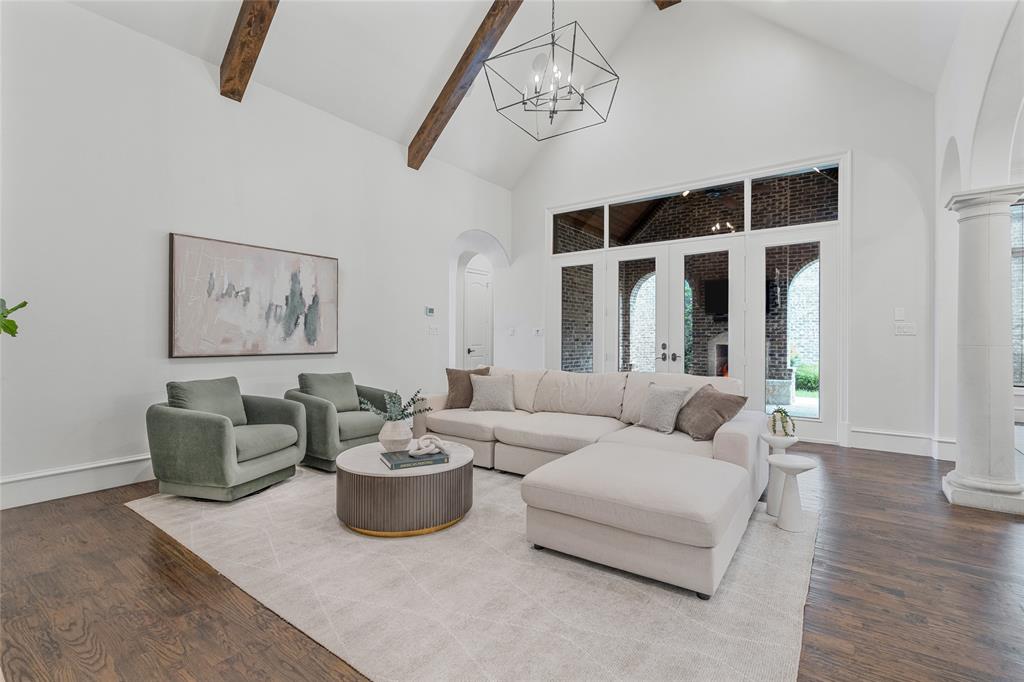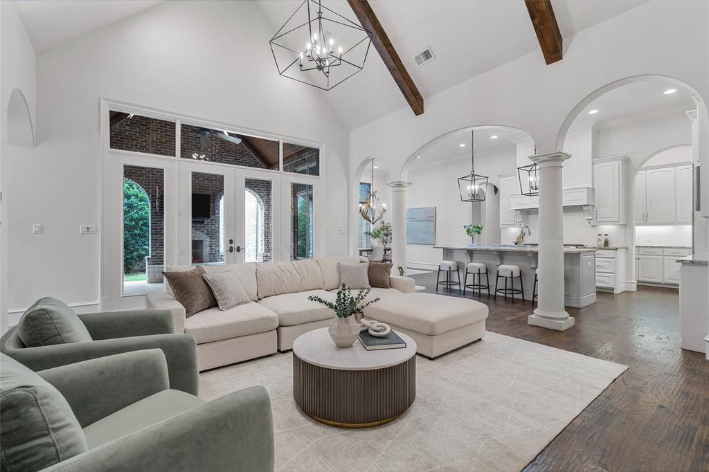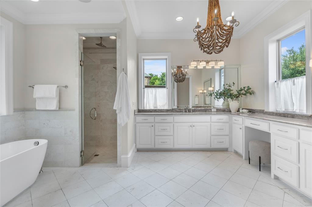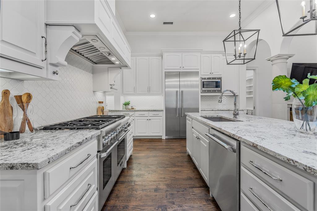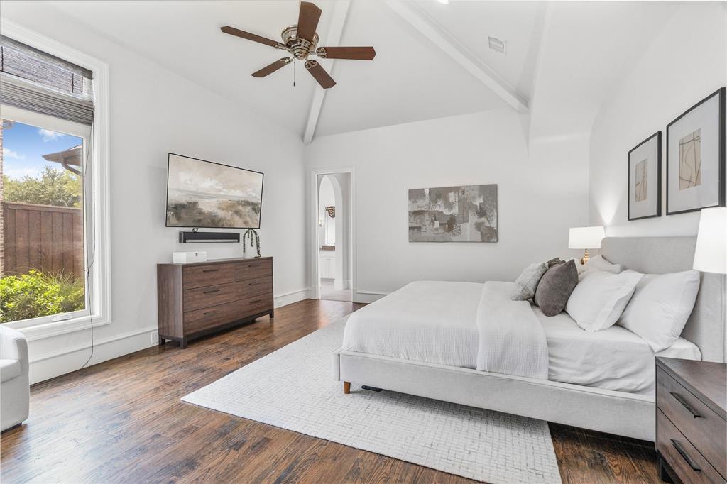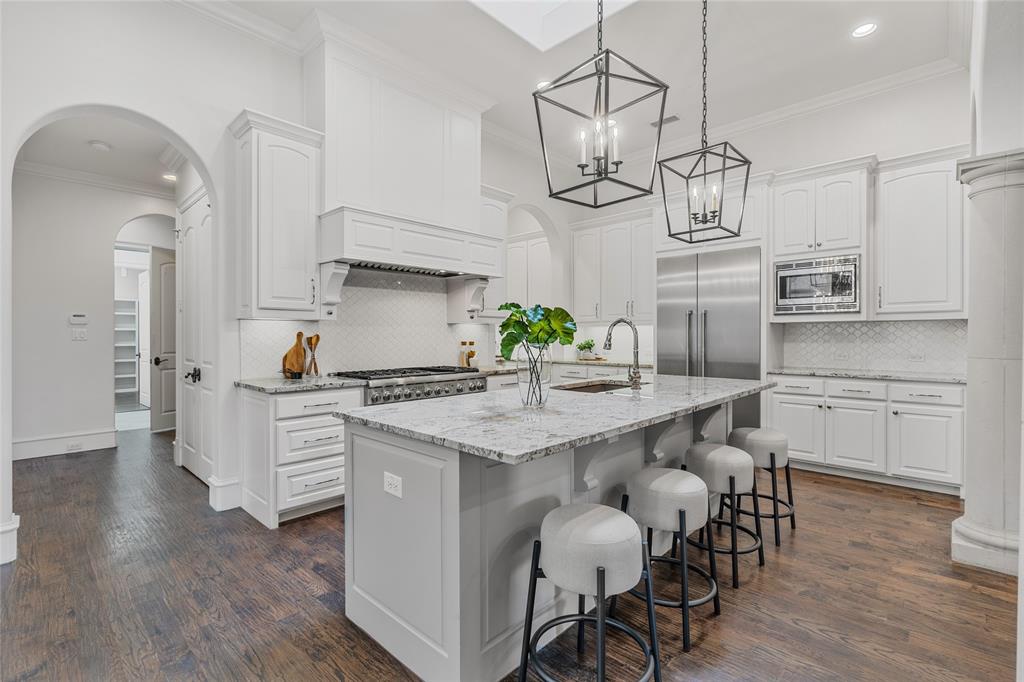 Experience upscale living in prestigious Normandy Estates. This luxury single-story home features hand-scraped hardwood floors, custom crown molding, and vaulted ceilings. It includes three bedrooms—each with a private bath—plus a beautifully designed home office featuring wainscoting and built-in cabinetry, comfort meets style. Bright, open spaces with large windows fill the home with natural light. A large open gourmet kitchen featuring commercial grade Thermador appliances with ample storage and a walk-in pantry! Step outside to a travertine patio with a cozy brick fireplace and architectural arches opening to the side yard. European elegance and exquisitely manicured grounds for carefree living and entertaining; including a clubhouse, pool, fitness center, jogging path, and lake with a fishing dock. All in a gated and guarded community close to Legacy West and with convenient access to the Dallas North Tollway and Highway 121. *Previous buyer terminated due to uncertain job relocation verification.*