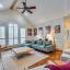 Inside you'll find hand-scraped hardwood floors and plantation shutters throughout all bedrooms and living areas. The spacious living room features vaulted ceilings, wood paneling, built-in shelving, and a brick fireplace. French doors open to a formal dining room, and the kitchen includes stainless steel appliances, granite countertops, abundant cabinet space, and a cozy breakfast nook with a bay window.