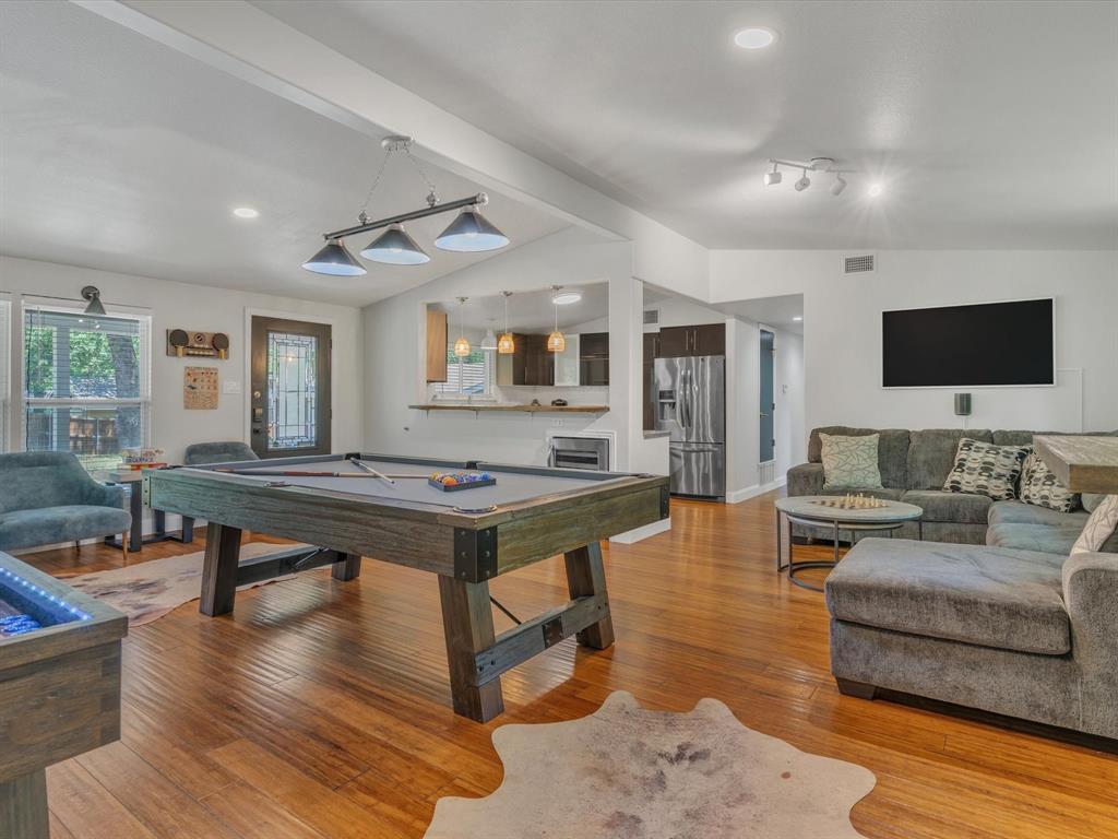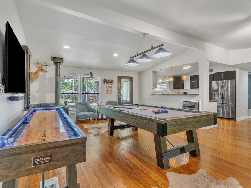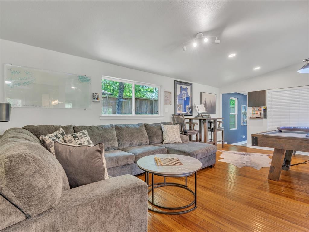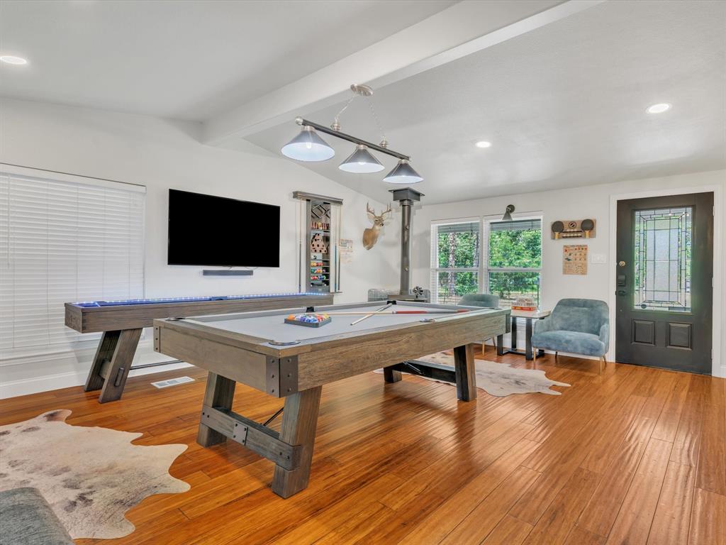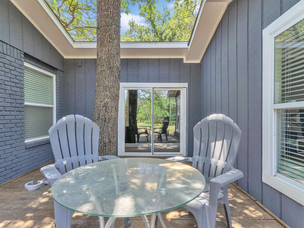 Serene Escape Surrounded by Deer & Wildlife within Walking Distance to Grapevine Lake!...Perfect for Short Term Rental, Vacation Home, Primary Residence or Adding Tiny Homes on any of the 4 Lots for Additional Income. .672 Acres Nestled in a Tranquil & Peaceful Atmosphere surrounded by Native Oaks & Near Trails leading through Nature, w the Lake Life Setting...Open Concept Home w Bamboo Wood Flooring Throughout, Billiard, Dining & Living Room w Pot Belly Stove & Updated Kitchen w Butcher Block Countertops & Bar open to Billiard Room for Serving Snacks & Entertaining. Large Primary Suite w Ensuite Bath & Sliding Doors w Exterior Views. 2 Spacious Secondary Bedrooms w Plenty of Space for Bunk Beds or Multiple Beds & Full Bath w Dual Sinks, Soaking Tub & Walkin Shower w Bench. Outdoor Sanctuary offers Ample Space for Enjoying Morning Coffee, Evening Libation, Area for Gathering Around the Firepit while Roasting Smores & Star Gazing. This Could be the Property You've Been Looking For to Make Lasting Family Memories, Income Producing as Short Term Rental or Make Your Forever Retirement Home!