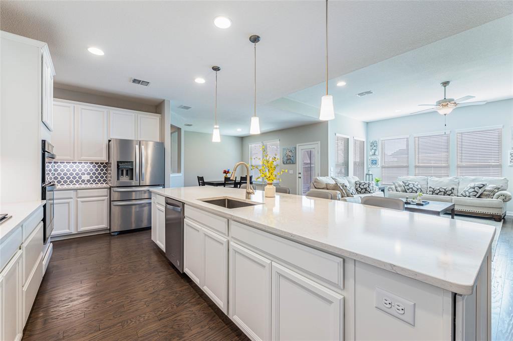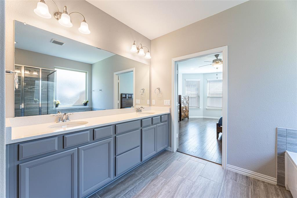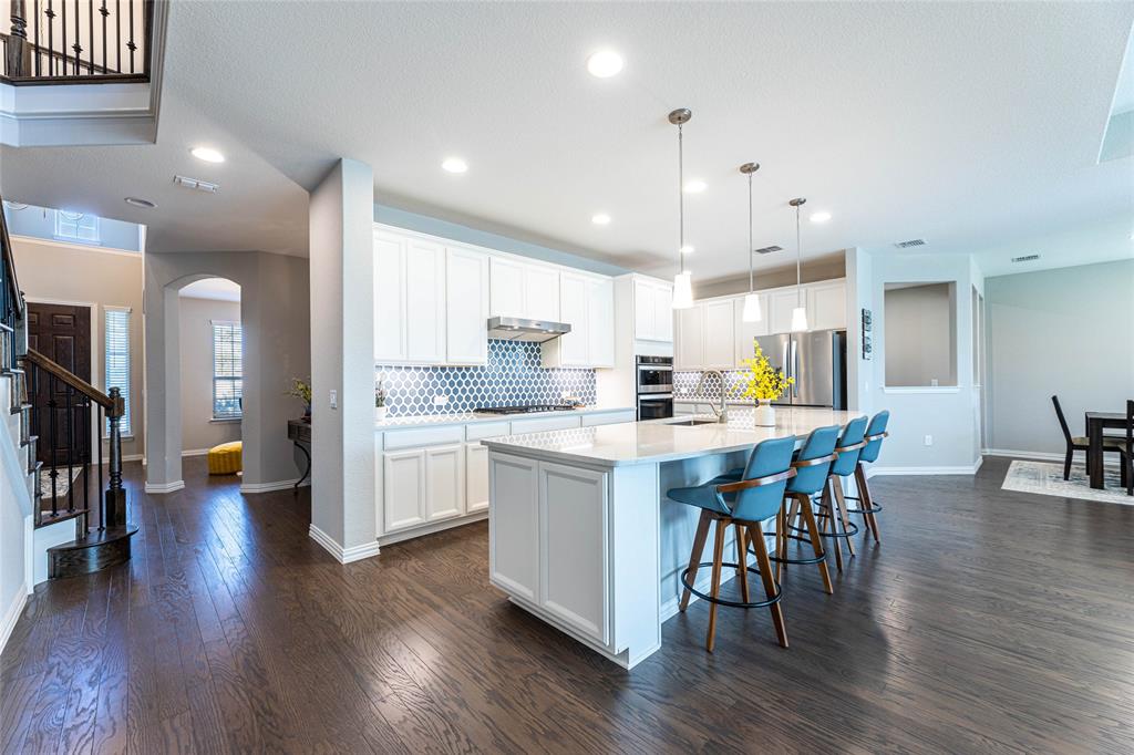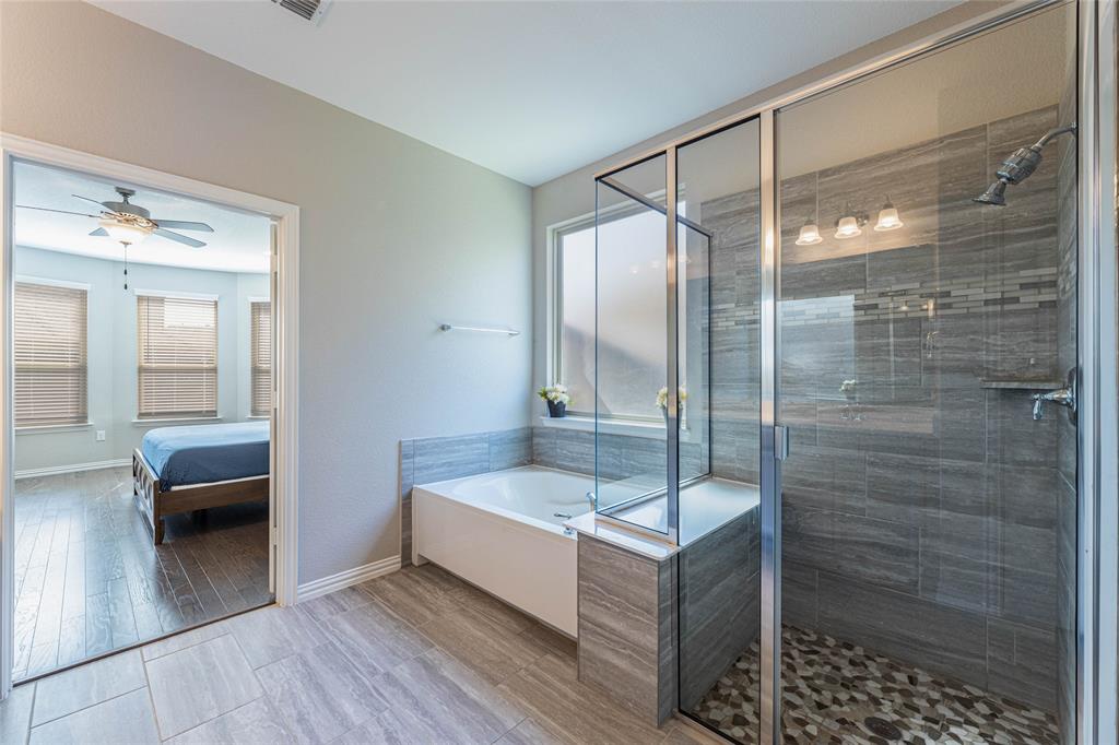 North Facing beautifully upgraded 5-bedroom, 4-bath home in the sought-after 5-Star Miramonte neighborhood, located within Prosper ISD — one of the top-rated school districts in the DFW area. Featuring an open floor plan with soaring ceilings and abundant natural light, this home offers a chef’s kitchen with quartz countertops, stainless steel appliances, a gas cooktop, pull-out drawers, and a walk-in pantry. The spacious master suite includes hardwood floors, a bay window, and a luxurious bath with Jacuzzi, separate shower, and dual closets.