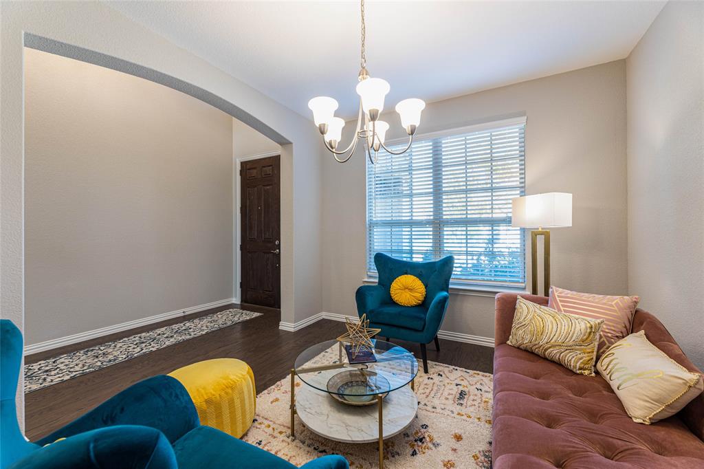 Enjoy multiple living areas including a formal living and dining room, dedicated office, and a 7.1 pre-wired media room. All bedrooms have walk-in closets, and the laundry room features a utility sink. Additional highlights include a 2-car garage with tandem storage space and a lush backyard. HOA amenities include a community pool and park.