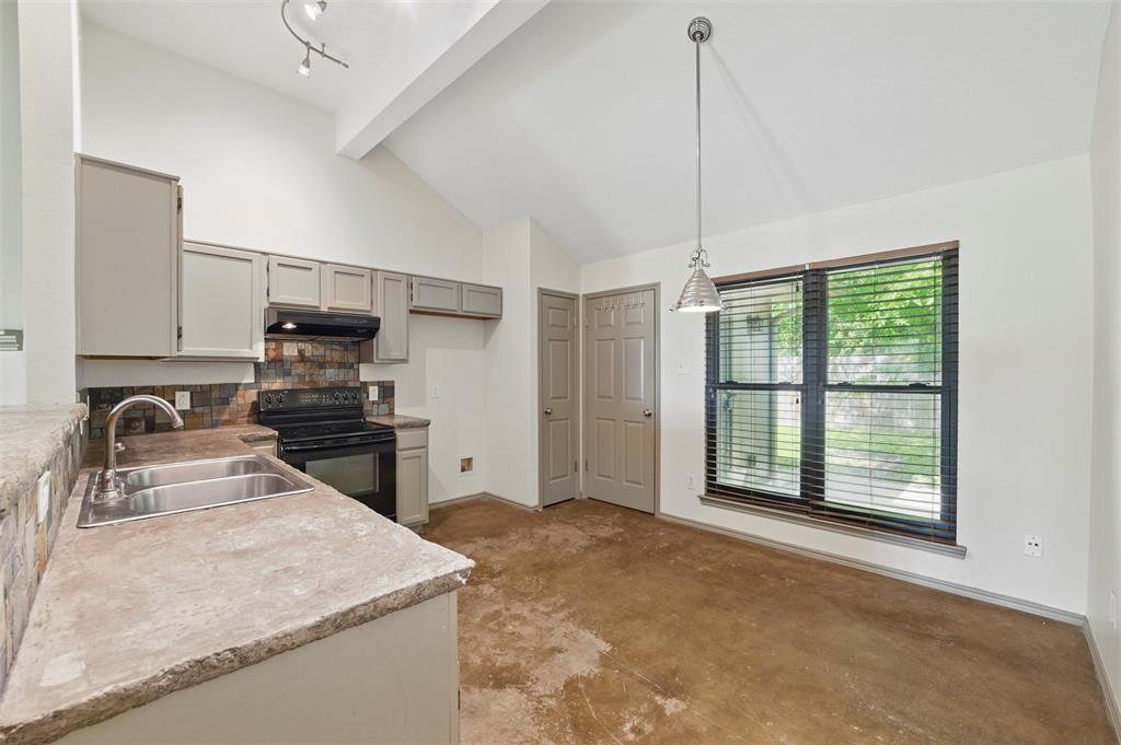 Well-maintained half duplex that’s move-in ready! The kitchen features concrete countertops, a breakfast bar, and modern appliances. The spacious living area includes an updated wood-burning fireplace, perfect for cozy evenings. The extended driveway continues into the backyard, offering ample space for parking a trailer or boat. Enjoy a nicely fenced backyard and many other great features! Additional storage space