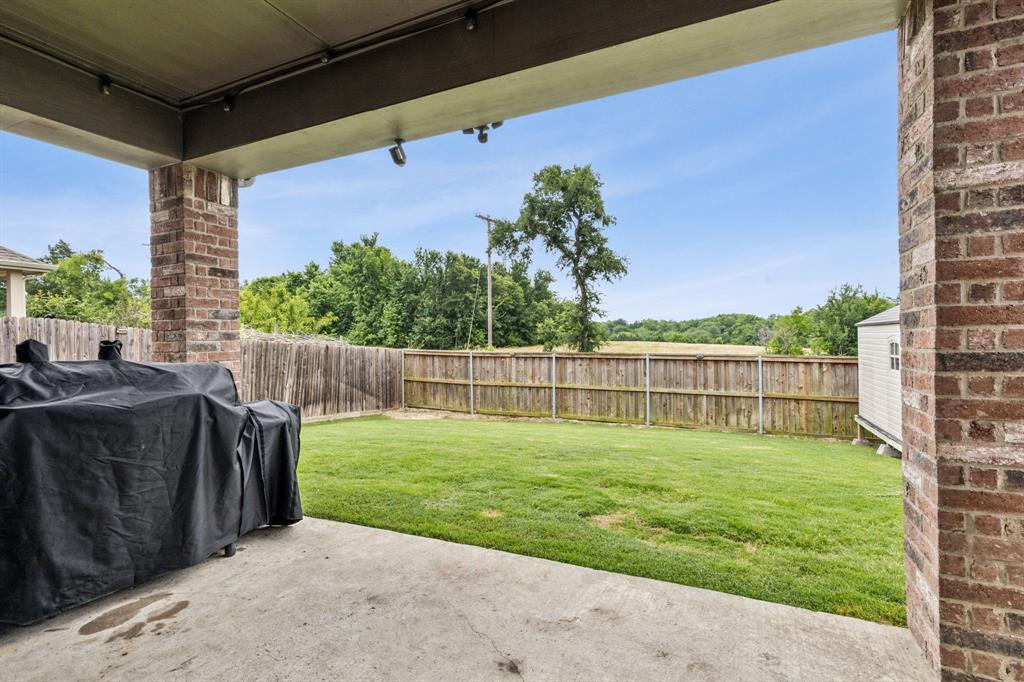 Step outside to relax or entertain on the extended covered patio, offering ample space for outdoor gatherings.