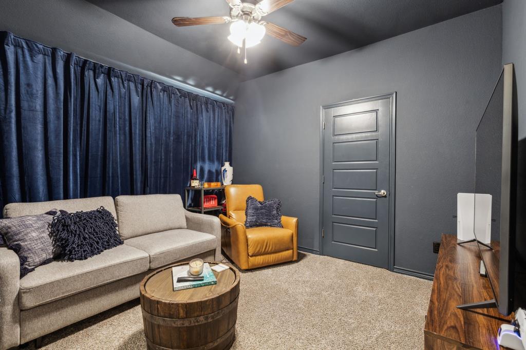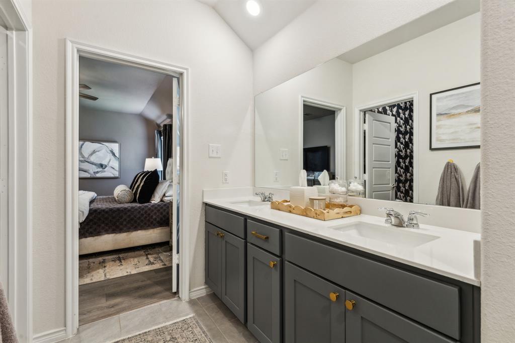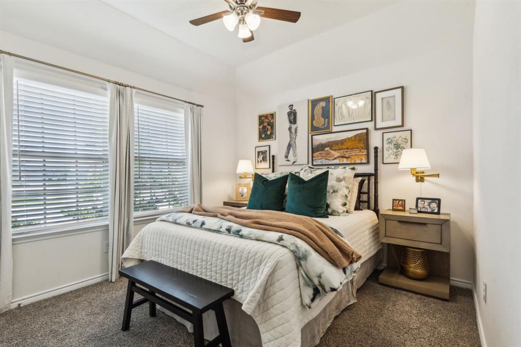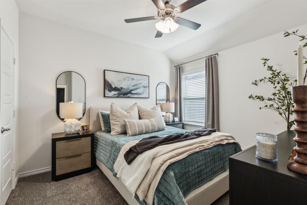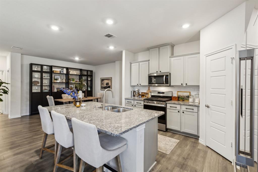 Located in the sought-after Bluewood Community in Celina TX on a desirable corner lot, this professionally decorated one-story home offers four bedrooms, three full bathrooms and a dedicated study. The gourmet kitchen features a gas cooktop, breakfast bar with seating, granite countertops and stainless steel appliances. The front guest room includes its own full bath. The primary suite offers a spa-style bathroom with walk-in shower, painted cabinets and an oversized walk-in closet. Two secondary bedrooms share a well-appointed hall bath and the fourth bedroom serves as a media room or second living space. A private home office is located just off the entry.