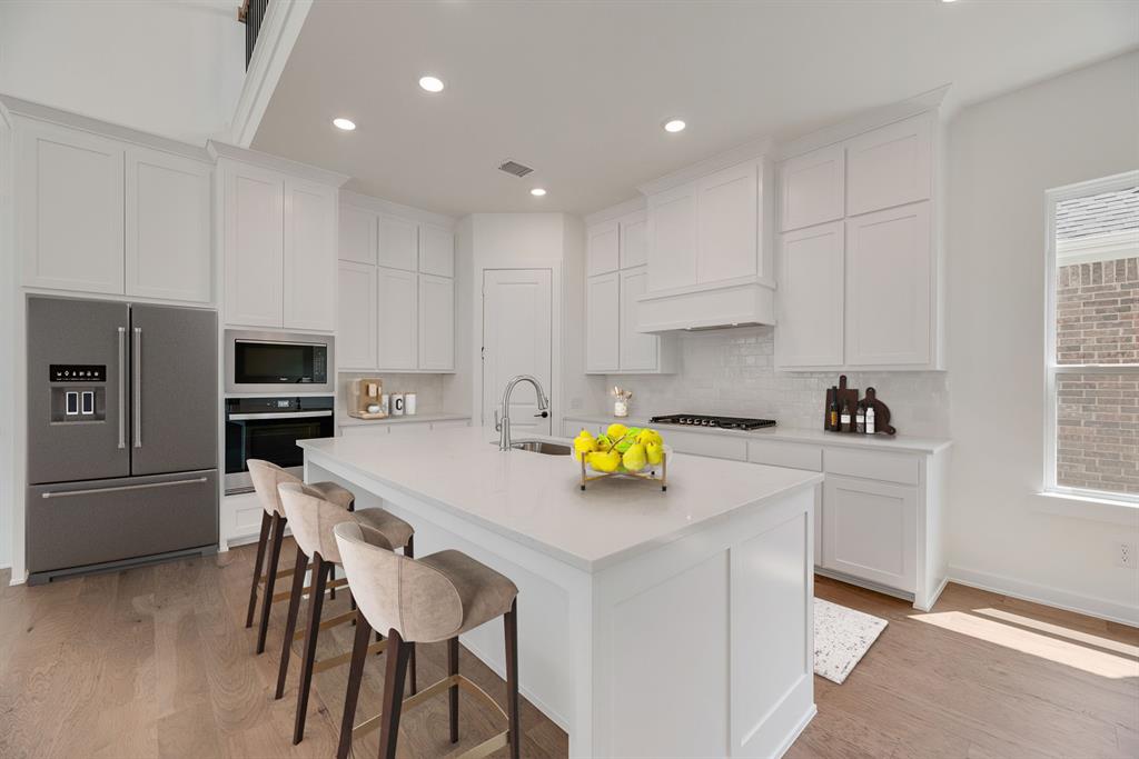 Spacious four-bedroom, three-and-a-half-bath home featuring a media room, game room, and private study! The luxury kitchen boasts quartz countertops, stylish cabinetry with glass uppers, and upgraded tile. Engineered wood flooring adds warmth and elegance throughout. Beautifully designed and ready this summer—call us today!
