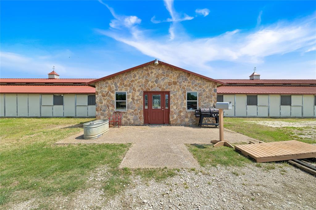 Imagine training under the Texas sky, just 30 minutes from the heart of Fort Worths equestrian scene. Will Rogers Coliseum and Dickies Arena. This exceptional 18-acre horse ranch in Grandview, Texas offers a rare opportunity for serious competitors and breeders to own a turnkey operation with a ranch home, large arena with announcers’ booth, office, an additional small worker home and top-tier facilities including two horse barns with a total of 30 stalls. The 1800 sqft functional ranch home provides a perfect retreat after a day in the saddle. Featuring 3 bedrooms, it's ideal for family living and entertaining. But the heart of this property is its exceptional equestrian infrastructure, State-of-the-Art Covered Arena for practice or events: A versatile 120 ft x 275 ft covered arena ensures year-round training, excellent lighting for evening work or events, announcers booth, excellent ground for barrels, roping or any other activity. Large Parking Area for events or visitors. Ample Stabling: 2 separate well-maintained horse barns, Barn 1 is connected to the Arena and has 20 secure indoor stalls and a large tack room with a custom revolving door with saddle racks and 2 baths. Extensive Land. Infrastructure: Spread across 18 acres of meticulously fenced pastures and excellent turn-out pens, your horses will thrive. The property also features excellent hay production and reliable water spigots fed by a functional water well. Additional Equestrian Amenities: A large office is in the main barn with custom wood cabinets and shelfs. Perfect for a sales or business office. The barn also has a kitchen that can be perfect for breeding operations. Located in the friendly community of Grandview, you'll enjoy the peace of rural living with unparalleled access to major equestrian events and amenities in nearby Fort Worth.