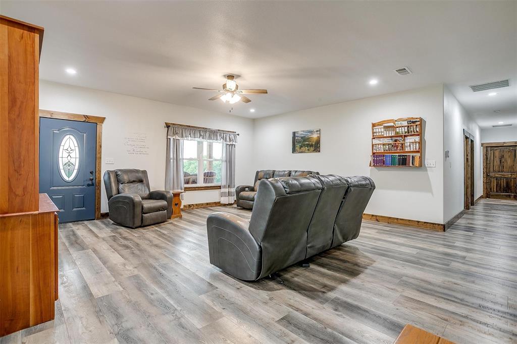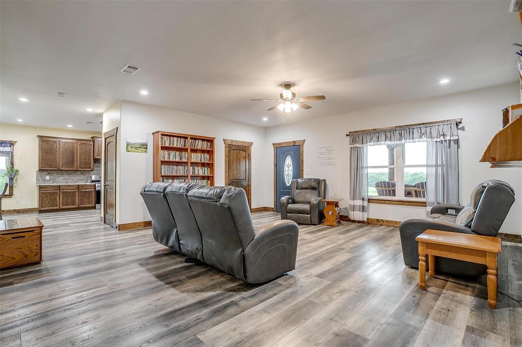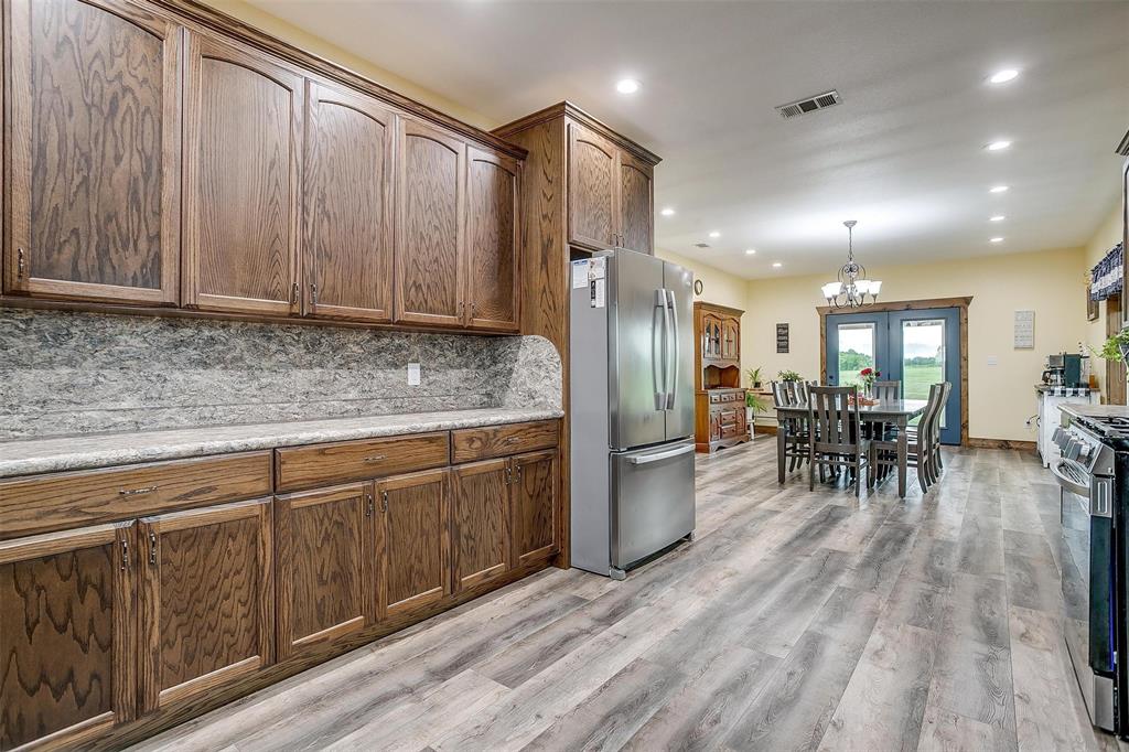 Welcome to the Country! Nestled on over 32 picturesque acres off of a paved road, this spacious ranch-style home offers the perfect blend of peaceful country living and modern convenience. With 5 bedrooms, 3 bathrooms, and large covered porches ideal for enjoying your morning coffee and scenic views, this property has it all. A separate mother-in-law suite with its own bathroom and kitchenette provides privacy for guests or extended family. The fully insulated 36X50 metal workshop with electricity is perfect for storage, hobbies, or your next big project. Enjoy sustainable living with paid-off solar panels, a private electric well, and a backup generator—meaning no utility bills and off-grid potential. With no restrictions and endless possibilities, this property is perfect for a family homestead, hobby farm, or anyone ready to embrace the freedom of wide-open Texas countryside. Don’t miss your chance to own this rare and unrestricted slice of country paradise!
