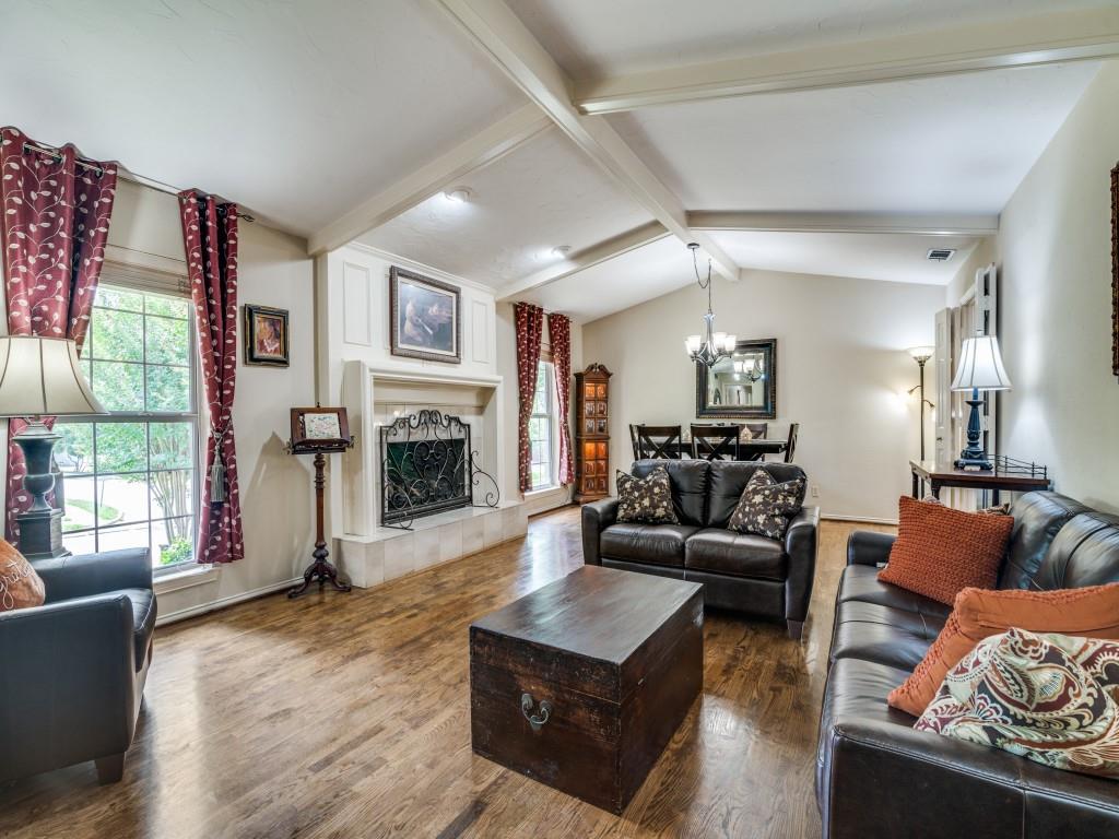 Welcome to this exceptional Mid-Century Modern home that effortlessly blends timeless design with contemporary comfort. Spanning over 3600 square feet, this gem features a thoughtfully designed layout ideal for both relaxed living and elegant entertaining! Step inside to discover spacious living-dining combination anchored by a large fireplace with hearth, perfect for cozy evenings or hosting guests. The large kitchen is a culinary dream, boasting granite countertops, ample cabinetry, and a breakfast room with built in shelving-ideal for everyday living. Three generously sized bedrooms, including one of the two primary bedrooms are located downstairs along with 2 full baths and one half bath, providing comfort and convenience for family or guests. Upstairs, a homeowners dream...a primary retreat that redefines relaxation. This stunning suite features a private fireplace, built in shelving living space, coffee bar, built in desk and an amazing Texas-sized bath that you must see to believe! The spa-like bath includes soaking tub, walk in shower, huge walk in closet, linen closet, and separate vanities A feature of this home is a large enclosed sunroom with wet bar and wine storage. A large family room is adjacent to kitchen along with a laundry folding station with storage and clothes bar, the perfect place for folding laundry or use as multi-purpose space! With abundant natural light, functional spaces, and mid-century charm throughout, this home reflects the personality and finishes that make a home like this one, a hard one to find!Some hardwoods, crown molding, plantation shutters, custom cabinets, double fireplaces, and picture frame paneling just to name a few. Outside, a gated driveway with covered patio area, open deck area, plenty of parking and a great plant shed area to prep plants! NEW Roof ( Aug. 2025)