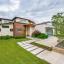 Curb appeal abounds with bold architectural lines, lush landscaping, new stone front steps, and a private electric gate. The fully turfed backyard is a serene oasis, anchored by a covered outdoor living area with fireplace and motorized screens—perfect for year-round enjoyment.
