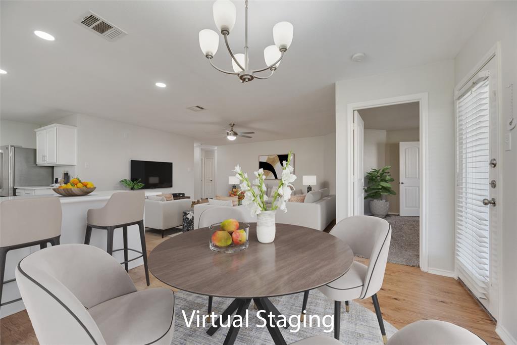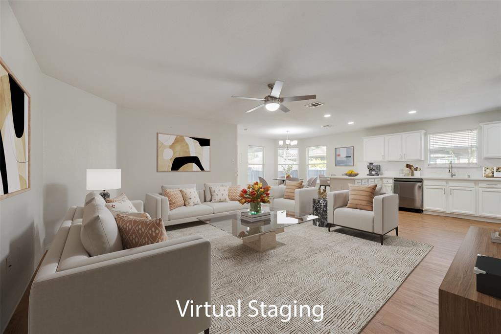 Beautiful 1605 sq ft - 2006 built home. Open concept living. Walking distance to the lake, community pool and family fun. Quick access to I-20 and only 10 minutes to Mesquite, and approx 30 minutes to Downtown Dallas. Home 4 bed, 2 bath, 2 car garage, large large walkin closet in master new vinyl floors. New paint in, out. New ceiling fans all over. Stainless steel appliances. Lots of cabinets in kitchen for storage. Covered patio for entertaining, cooking out. Very quiet community and all residents are allowed to use the pool by the lake walking distance. This home at this price will not last long.