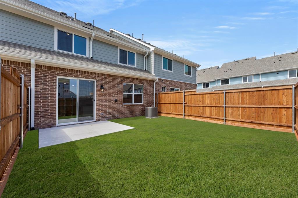 MLS# 20953955 - Built by Grenadier Investments - Ready Now! ~ This stunning MOVE-IN READY contemporary townhouse, built in 2024, offers 1,759 sq ft of modern living space in the desirable Woodbridge Townhomes community. Featuring 3 spacious bedrooms, including 3 primary suites, and 3 bathrooms (2 full, 1 half), this home is perfect for comfortable living. The open layout includes a cozy living area and a dining space, enhanced by vaulted ceilings and decorative lighting. Enjoy the convenience of a 2-car garage and a private, landscaped yard with a covered patio. The home is equipped with central heating and cooling, high-speed internet, and stylish flooring throughout. Located in the highly regarded Wylie ISD, with Dodd Elementary and Wylie High School nearby, this property is a perfect blend of modern design and functionality. Don't miss out on this exceptional opportunity!