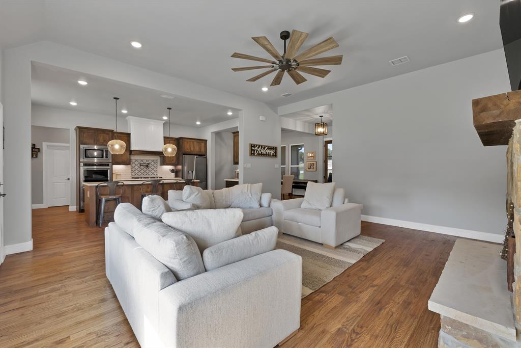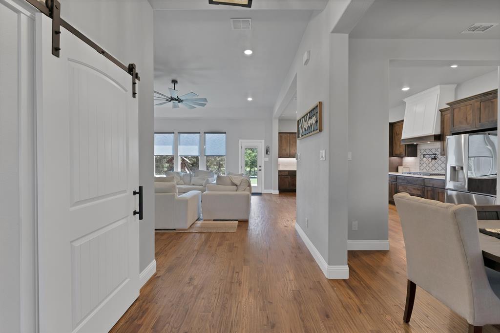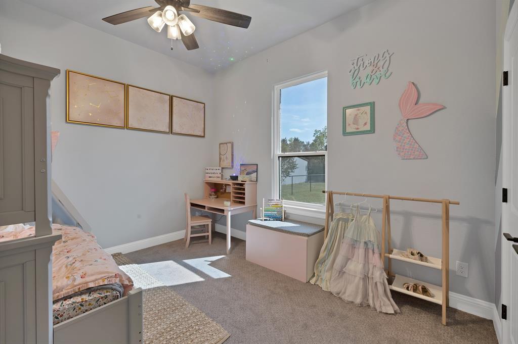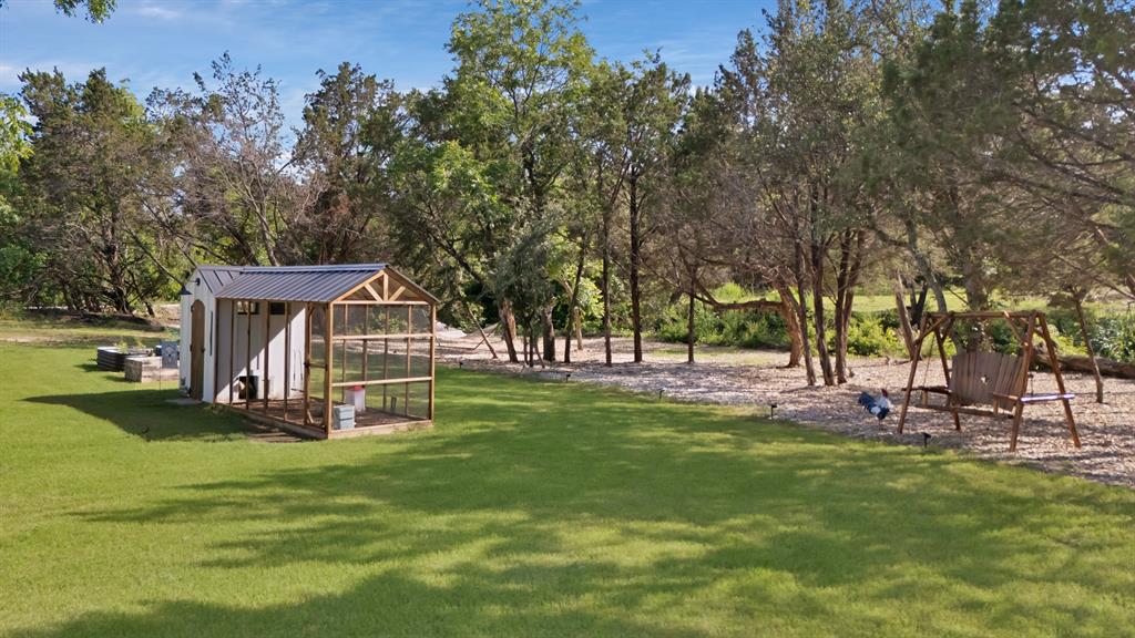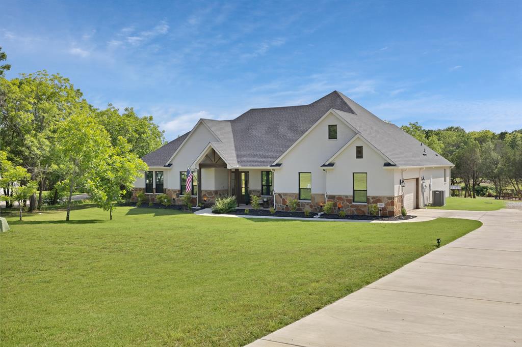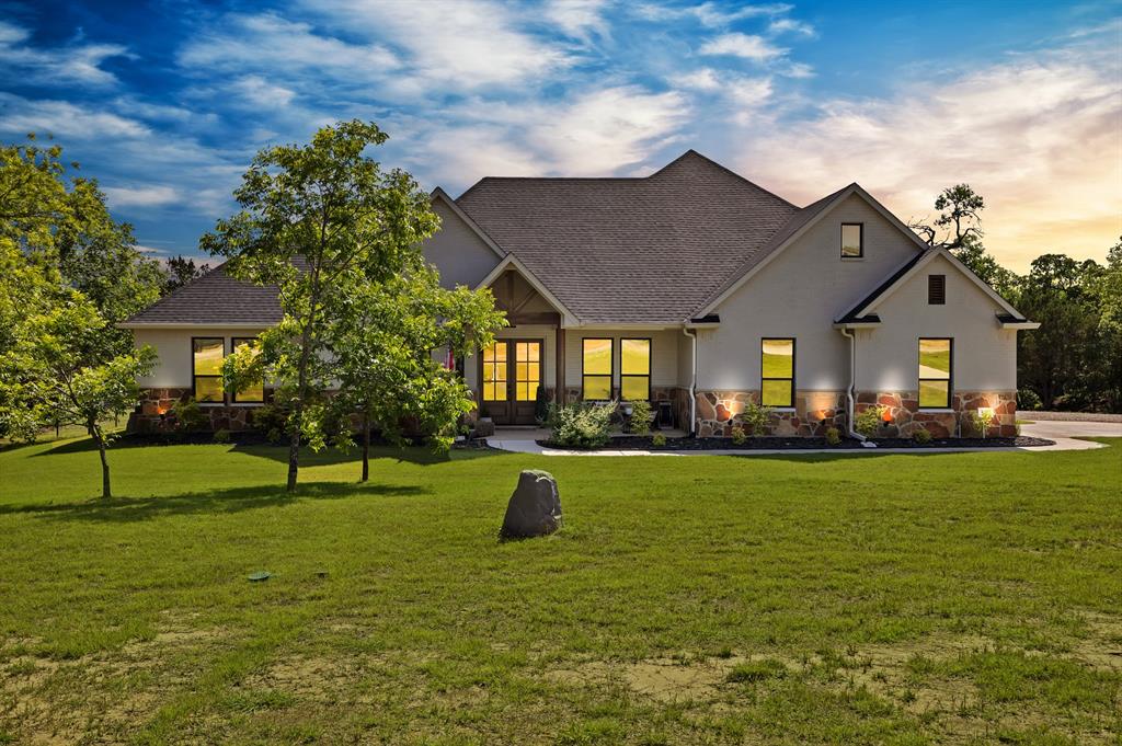 This stunning 4-bedroom, 2.5-bath home offers 2,589 sqft of thoughtfully designed living space on 2.5 peaceful acres with no HOA! A seasonal creek runs through the back of the property, enhanced by a custom-built bridge—perfect for enjoying the natural surroundings. Inside, you'll find quartz countertops, a double oven, stylish tile in the bathrooms and laundry room, a spacious walk-in pantry, cozy fireplace in the open concept living area, and a luxurious deep soaking tub in the primary suite. The flexible fourth bedroom can easily function as a home office, making it versatile for each persons needs. The finished garage features an epoxied floor, mounted racks for extra storage, EV charger, plus a whole-home water filtration system for added comfort and convenience. Enjoy quiet country living from the covered front and back porches, where fireflies light up the backyard during summer evenings. From the chicken coop to the swing set, to the whole property sprinkler system, this home is ready for its new family and a perfect blend of modern style and rural charm!