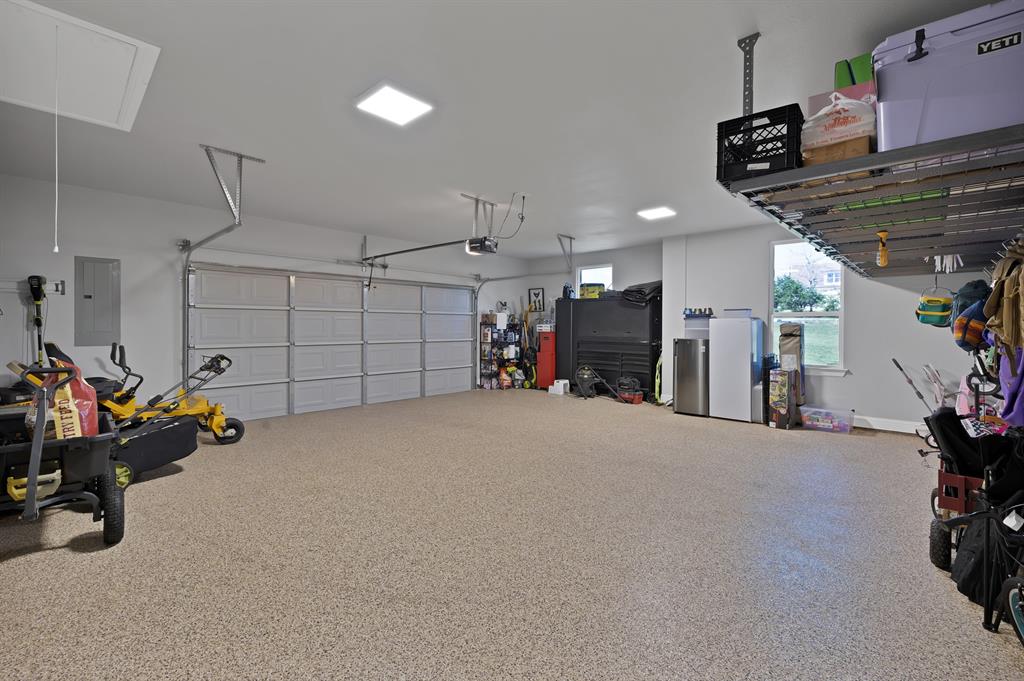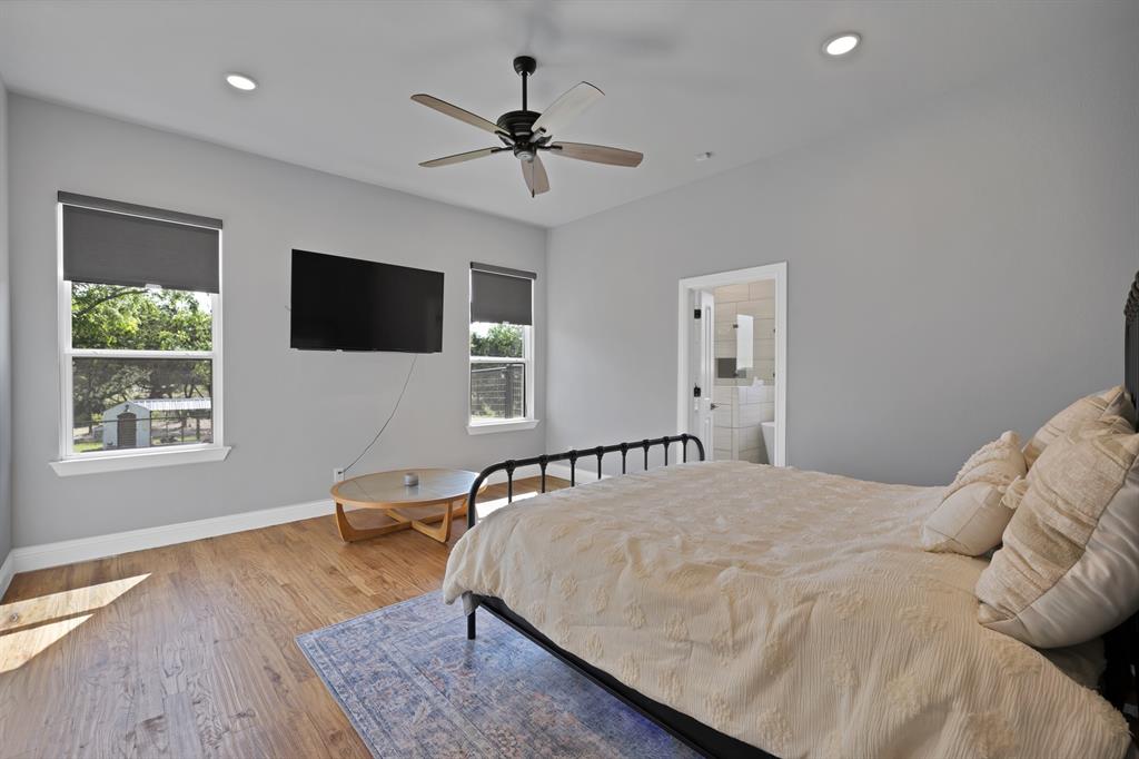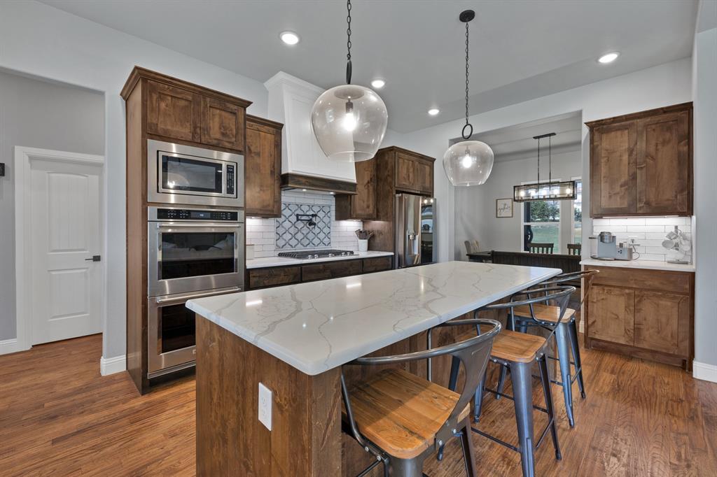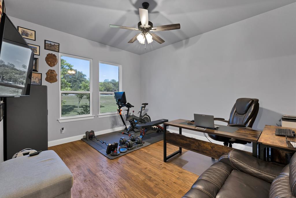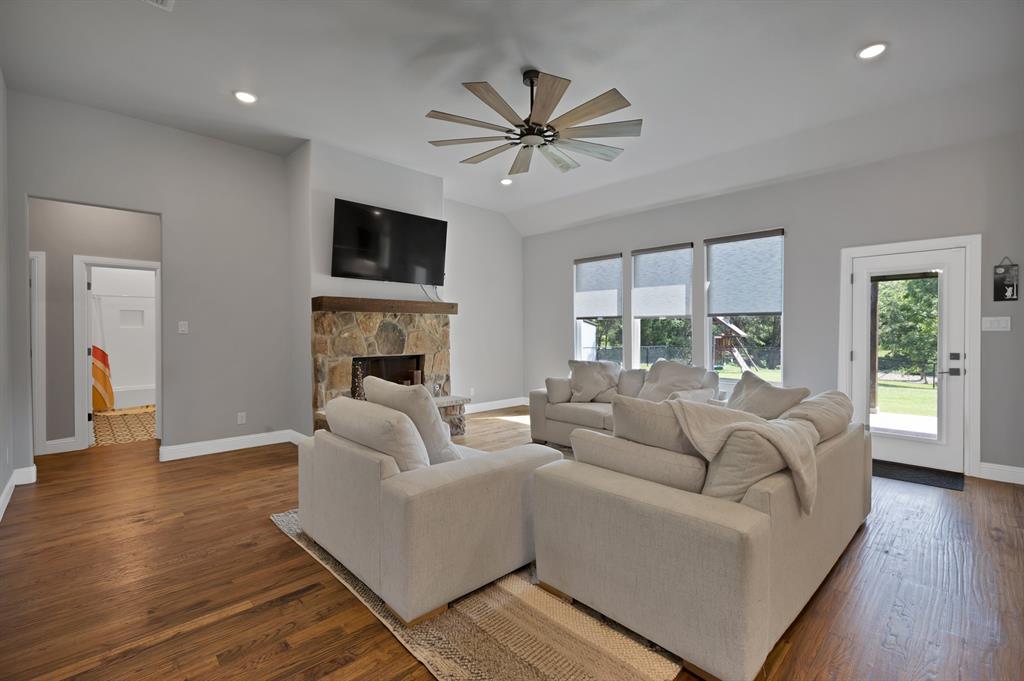 This stunning 4-bedroom, 2.5-bath home offers 2,589 sqft of thoughtfully designed living space on 2.5 peaceful acres with no HOA! A seasonal creek runs through the back of the property, enhanced by a custom-built bridge—perfect for enjoying the natural surroundings. Inside, you'll find quartz countertops, a double oven, stylish tile in the bathrooms and laundry room, a spacious walk-in pantry, cozy fireplace in the open concept living area, and a luxurious deep soaking tub in the primary suite. The flexible fourth bedroom can easily function as a home office, making it versatile for each persons needs. The finished garage features an epoxied floor, mounted racks for extra storage, EV charger, plus a whole-home water filtration system for added comfort and convenience. Enjoy quiet country living from the covered front and back porches, where fireflies light up the backyard during summer evenings. From the chicken coop to the swing set, to the whole property sprinkler system, this home is ready for its new family and a perfect blend of modern style and rural charm!
