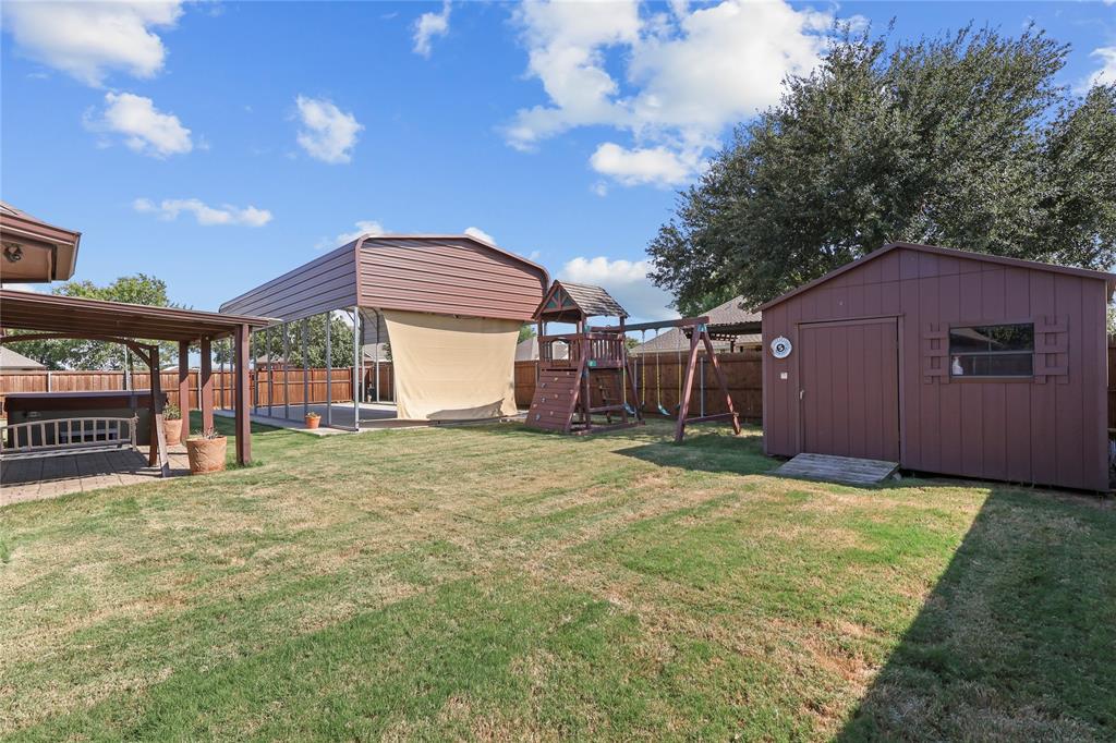 Welcome to this beautifully maintained home situated on a spacious corner lot in the highly desirable High Point Estates – and best of all, there's no HOA, PID, or MUD! Featuring engineered wood flooring throughout most of the home (no carpet!), this residence offers comfort, style, and functionality. Enjoy an open-concept floor plan perfect for entertaining, with a stylish kitchen that boasts a granite island and plenty of counter space. The large primary suite features dual closets, offering ample storage and privacy. Outdoors, you'll love the board-on-board privacy fence and gated RV or boat parking – ideal for storing extra vehicles or your favorite outdoor toys. The private backyard oasis includes a hot tub, swing, swingset, storage unit with electricity, and low maintenance landscaping, providing the perfect place to relax and unwind. Conveniently located close to schools, downtown amenities, and restaurants – and just an hour from DFW Airport – this home truly has it all.