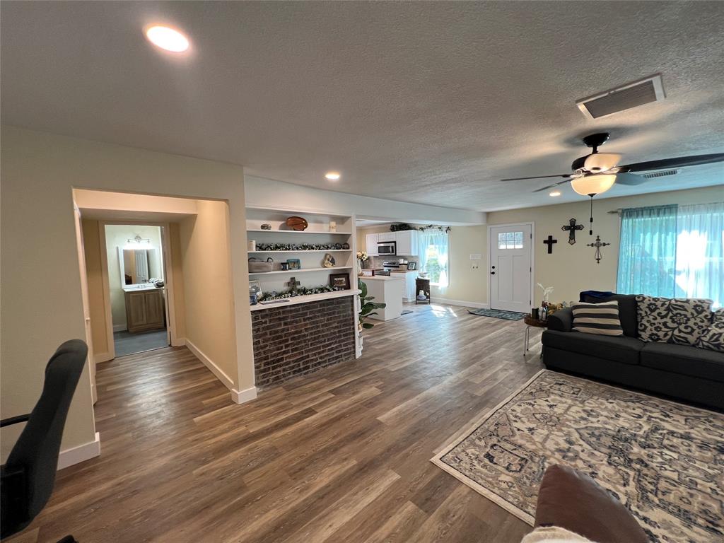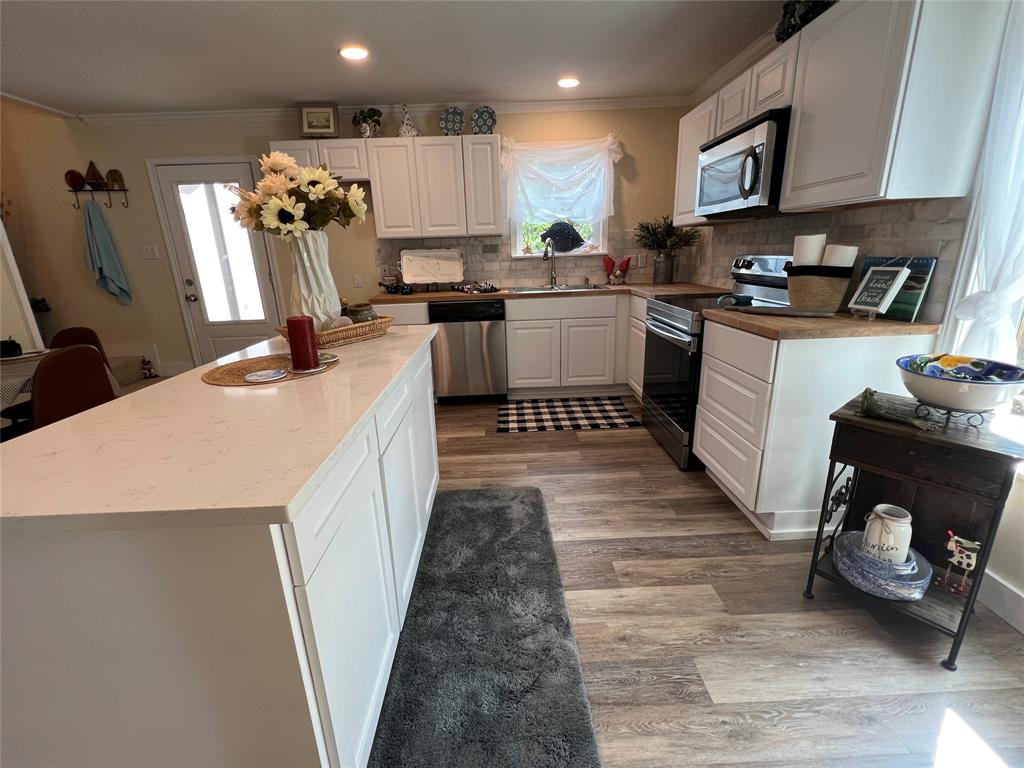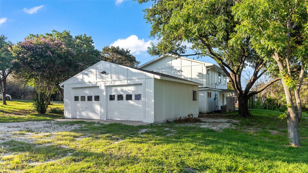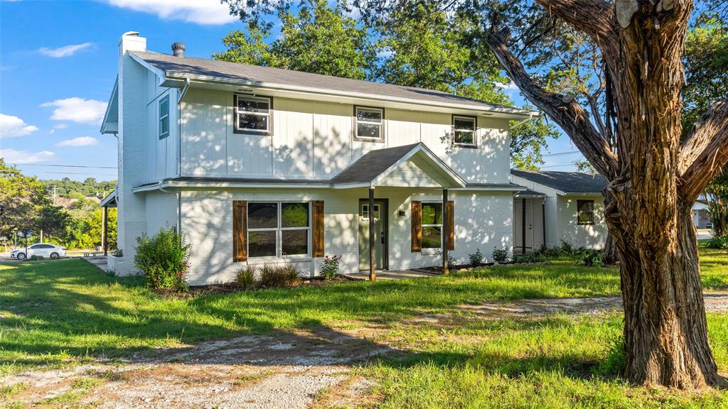 Beautiful Newly Renovated home with 4 bedrooms and 2 full bathrooms, on 2 lots within walking distance to Lake Granbury! Open concept floor plan allows everyone to interact while the chef is preparing meals and the game is on the TV in the living room. Sit out on the covered back porch and drink coffee in the morning and listen to the birds. New flooring, New paint inside and out make you feel like you're in a new home. Both the front and back yards have huge oak trees! You don't find that in a new build! The garage fits 2 vehicles and there is plenty of room to park your other toys, boat, jet skis, trailer. There is a park within walking distance that you can launch your boat, have a picnic, feed the ducks, or go swimming in the lake.