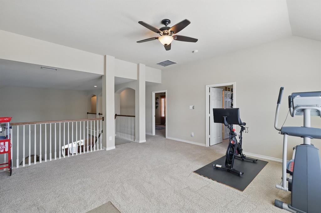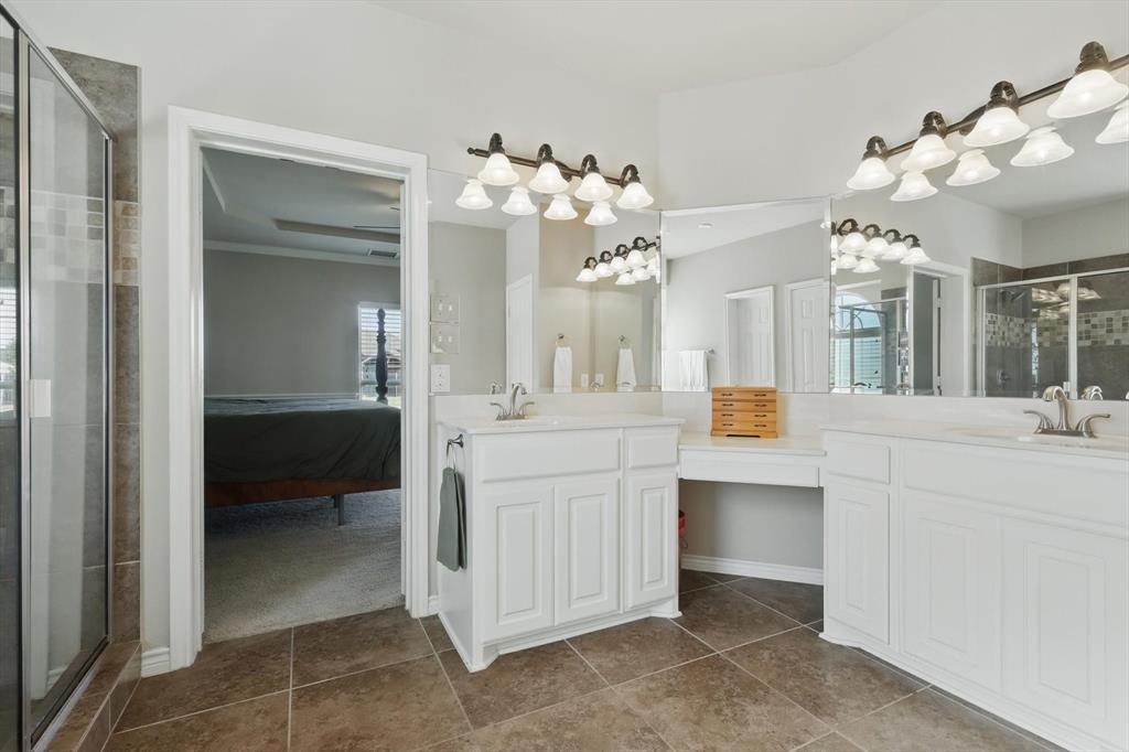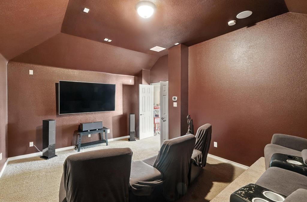 The primary suite is tucked away on the main level, offering privacy and a relaxing ensuite bath complete with a soaking tub, separate shower, and dual vanities. Upstairs, a catwalk overlooks the main living space and leads to a flexible loft, a dedicated media room, and generously sized secondary bedrooms which offer space to grow, work, or relax, with flexibility for any season of life.