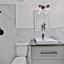 The spa like bathroom features a custom-tiled shower, floating vanity, heated mirror, and towel warmer creating a serene, elevated experience.