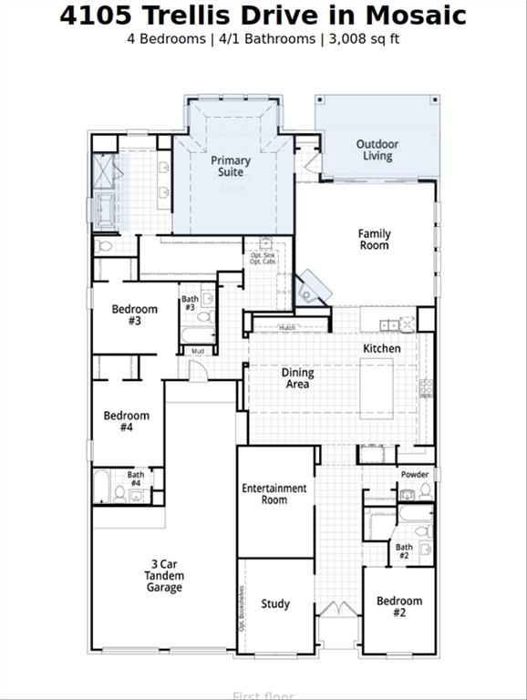 MLS# 20954587 - Built by Highland Homes - October completion! ~ CONTACT SALES OFFICE FOR DETAILS ON BUILDER PROMOTIONS.MOVE IN READY BY END OF OCTOBER. PROSPER ISD. NEW ON-SITE ELEMENTARY SCHOOL READY FOR FALL 2025! THIS GORGEOUS ONE STORY HOME FEATURING 4 BEDROOMS, 4.1 BATHROOMS, ENTERTAINMENT ROOM, STUDY, SPACIOUS FAMILY ROOM, AND 3 CAR TANDEM GARAGE. Sliding Glass Doors (at Patio), Fireplace (at Family Room), Freestanding Tub (59 rectangular), 16' Garage Door ilo (2) 8' Doors, Extended Outdoor Living, Extended Primary Suite, Utility Cabinets with sink, Shower ilo Tub-Secondary - Acrylic Pan!