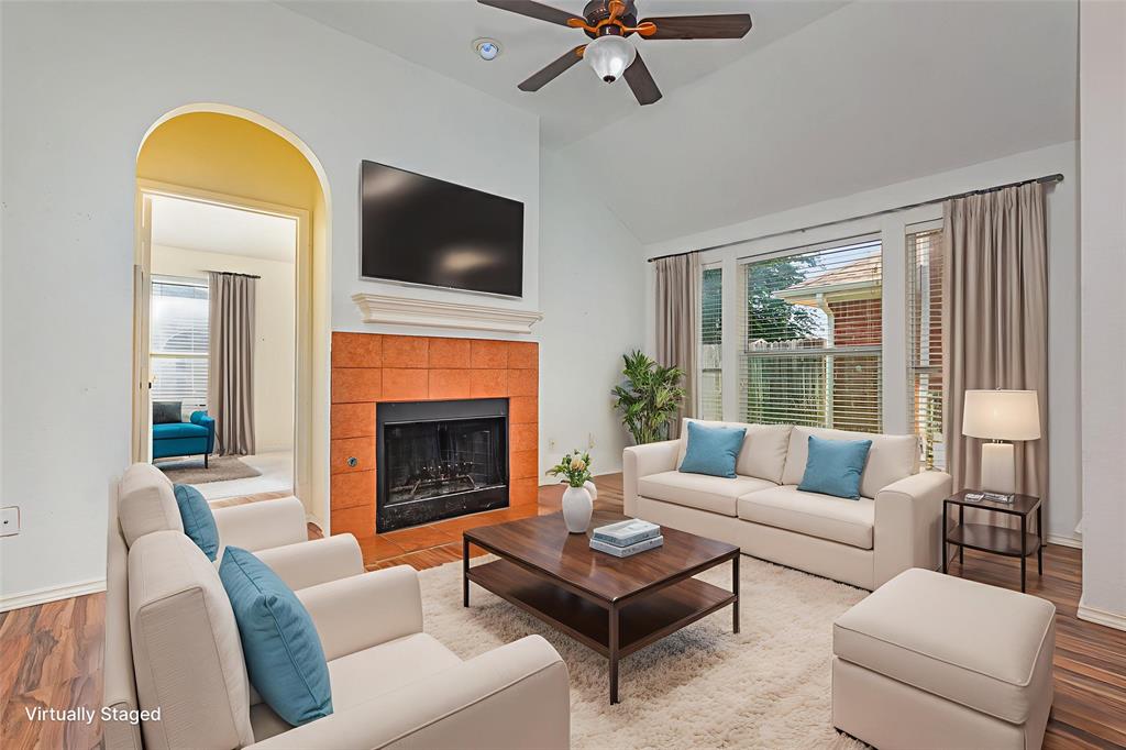 BUYER FINANCING FELL THROUGH - 3.6% Assumable VA loan Rate! This beautifully updated home is ideally located just minutes from Lake Ray Hubbard, with convenient access to I-30, George Bush Turnpike, and I-635. The split-bedroom, open concept design offers 9-foot ceilings and an abundance of natural light throughout. The main areas feature updated wood-look flooring, while the primary bedroom includes cozy carpeting. The kitchen, dining area, and living room flow seamlessly together and offer an abundance of entertaining options. The kitchen has been tastefully refreshed with painted cabinets and a stainless gas range and oven. The primary suite boasts an ensuite bath with a separate tub and shower for ultimate relaxation. With its thoughtful updates and prime location, this home is a must-see!