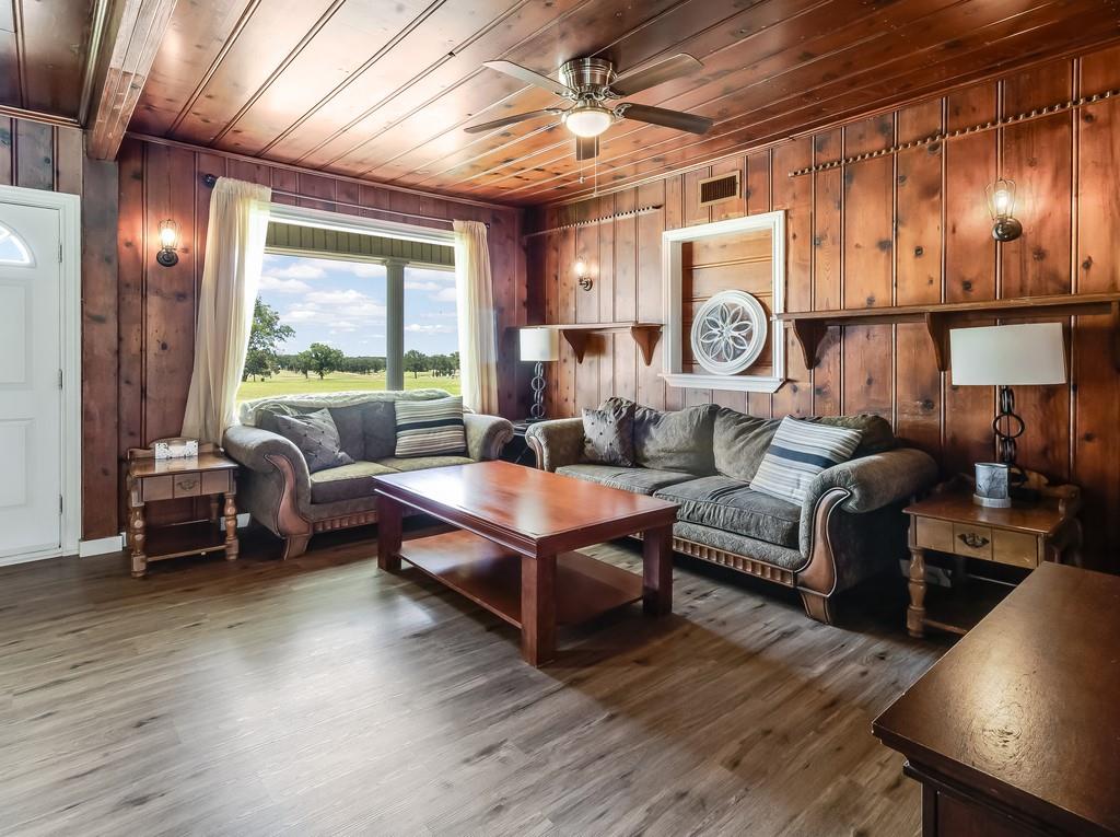 Welcome to a home that offers more than just space, it offers opportunity. Overlooking the picturesque greens of The Oaks Golf Course, this spacious and versatile property spans over 2,700 square feet and is brimming with potential. Whether you're a growing family needing room to spread out, a professional looking for a home based office, or an investor seeking a property with rental or commercial use potential, this one checks every box. Inside, you’ll find 5 generously sized rooms and 4 full bathrooms, including three private bedroom bathroom suites, one with its own private entrance, perfect for in laws, guests, clients, or a short-term rental setup. The original knotty pine family room radiates warmth and charm, while the beautifully updated kitchen and bathrooms deliver modern comfort and convenience. Enjoy peaceful mornings or evenings soaking in the golf course views, or entertain in the large fenced backyard with plenty of room to relax or play. A 2 car garage adds even more functionality to this well appointed property. With excellent access to Interstate 45 and a layout that supports residential, multi generational, or commercial use, this unique property is ready to adapt to your lifestyle or business needs. Don’t miss your chance to own a home that offers scenic beauty, flexibility, and timeless character all in one. This home can come fully furnished as well and is currently being used as a successful short term rental.
