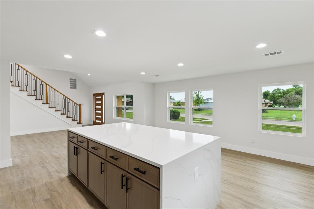 Welcome Home to Modern Comfort and Style in Richardson! Imagine pulling into a quiet street in the heart of Richardson, where a beautifully updated white brick home with warm light wood accents instantly catches your eye. It’s the perfect blend of charm and modern design—and it's completely move-in ready. Step through the front door and be greeted by a bright, airy space that feels like home from the very first moment. Just off the entry, the spacious formal living room invites you to settle in, and as you take one step down, the sunken family room reveals itself—with a bold black and white stone fireplace that commands attention. The custom tile flooring and open layout make this the perfect space for cozy nights or lively gatherings. The heart of the home, the kitchen, truly sparkles. Featuring a stunning waterfall island, an electric cooktop with sleek vent hood, and an abundance of cabinetry, it’s a space designed for both beauty and functionality. Whether you're cooking for two or entertaining a crowd, this kitchen rises to the occasion. Just off to the side, the sunny breakfast nook is the ideal spot for morning coffee or casual meals. The primary suite is a private retreat, spacious and serene. The en-suite bath feels like a luxury spa—with dual sinks, a framed mirror, a double shower, a soaking garden tub, and a generous walk-in closet. The secondary bedrooms are just as impressive—nicely sized with plenty of natural light and room to grow, work, or relax. The large backyard offers a generous patio, perfect for weekend BBQs, outdoor dining, or simply enjoying a quiet evening under the stars. And with a rear two-car garage, convenience and curb appeal go hand in hand. This turnkey home is fully renovated, thoughtfully designed, and perfectly located! All that’s missing is you.