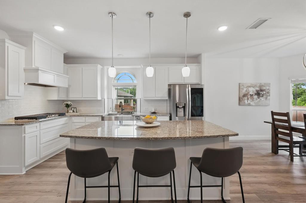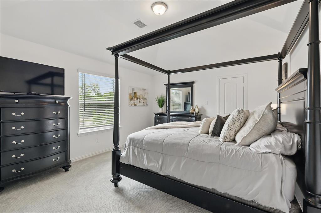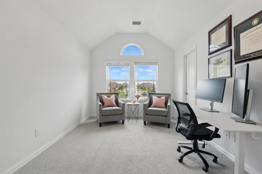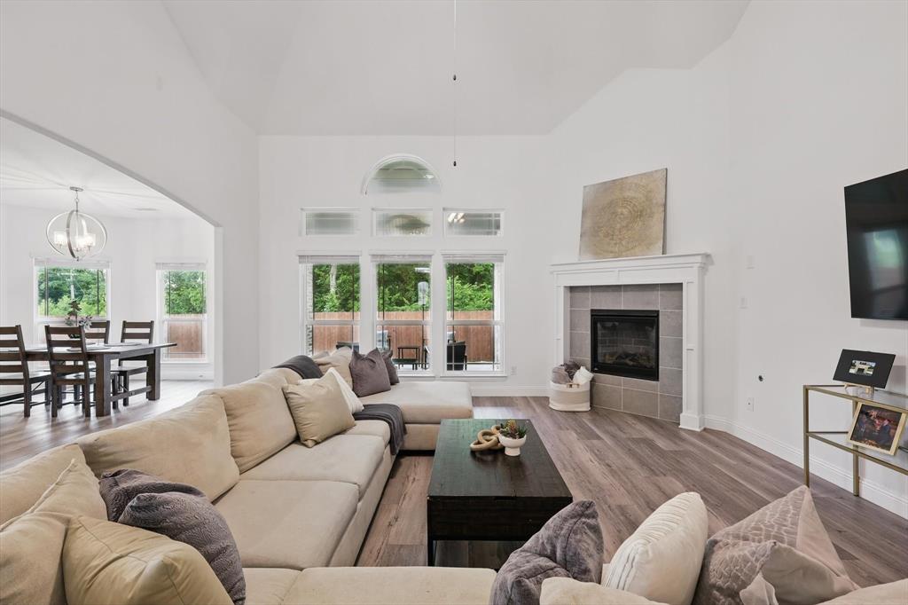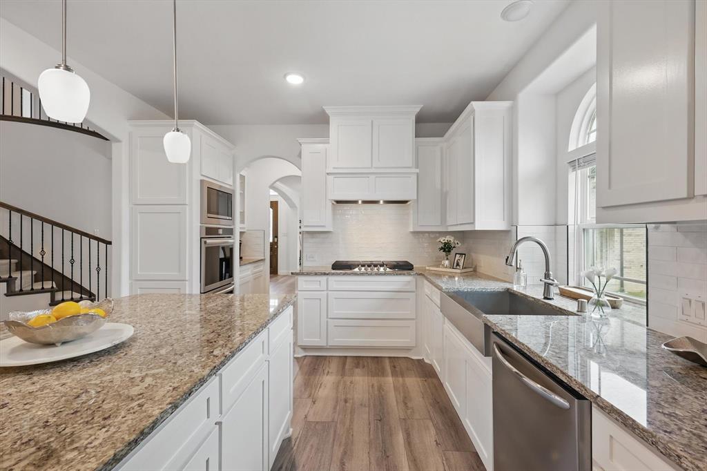 Situated on a spacious 0.64 ACRE LOT WITH A TREED BACKYARD and in a peaceful cul-de-sac, this beautiful 4,188-square-foot home was built in 2022 by First Texas Home. It offers 5 spacious bedrooms, 4 full bathrooms, a dedicated office, a versatile loft, and a relaxing media room, making it ideal for comfortable family living and entertaining. The home features an open-concept layout. The chef inspired kitchen includes a 5 burner gas cooktop, double ovens, shaker-style cabinetry, a spacious California island with pendant lighting, a farmhouse sink, and a walk in pantry. Between the kitchen and dining area, there is a wet bar for convenient entertaining. Adjacent to the kitchen, the expansive living area boasts a vaulted ceiling and a cozy stone fireplace, creating an inviting atmosphere. The primary suite provides a serene retreat with a spacious walk-in closet and an ensuite bathroom featuring dual vanities with ample counter space and storage, a separate shower, and a soaking tub. The large covered patio, complete with a fireplace, overlooks the backyard, extending the living area outdoors. Situated on a generously sized lot of over half an acre, the home enjoys a prime location that offers exceptional privacy and a peaceful setting, making it an ideal retreat. Additional features throughout the home include luxury vinyl plank flooring, upgraded carpeting, and granite and quartz countertops, adding both durability and elegance to the living space. Located within the Midlothian Independent School District, it is close to schools, parks, and shopping centers. With no HOA fees, residents enjoy greater flexibility and privacy.