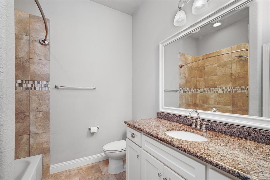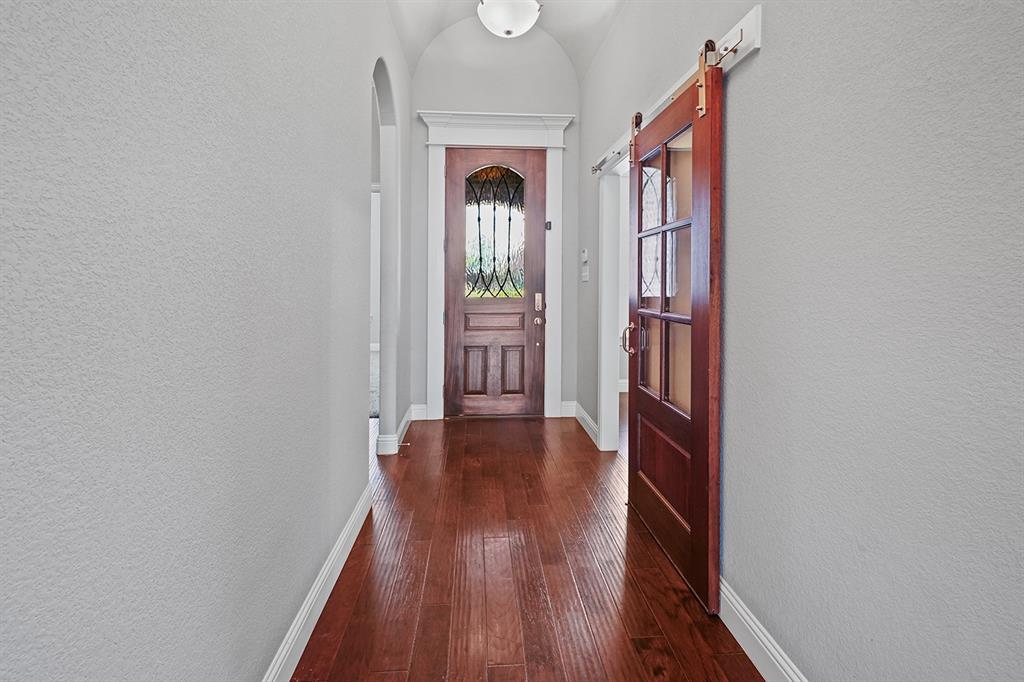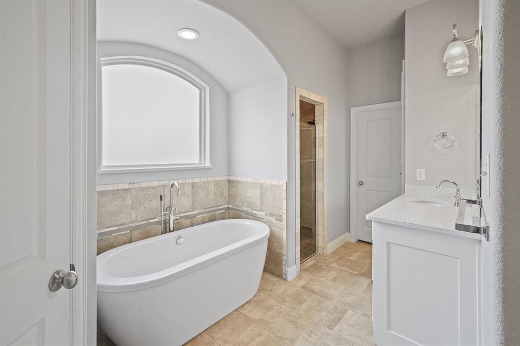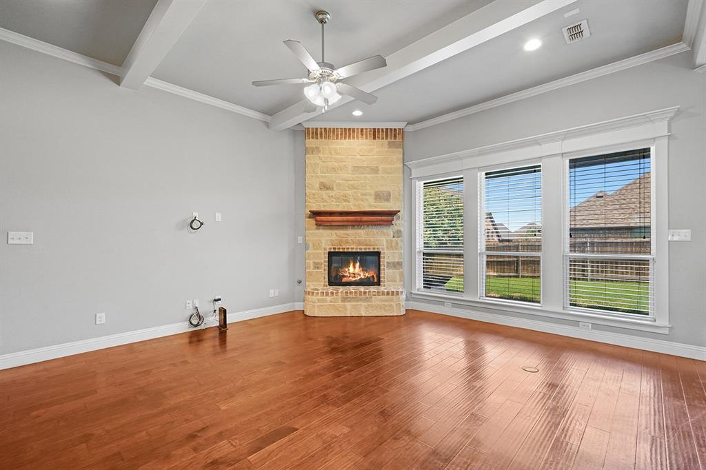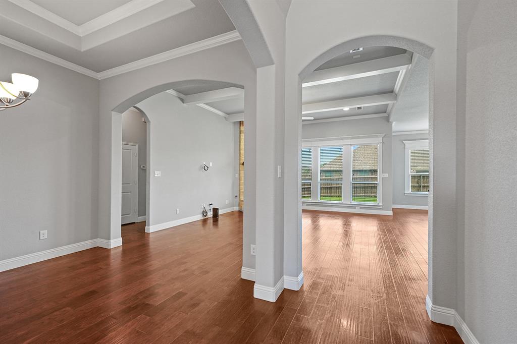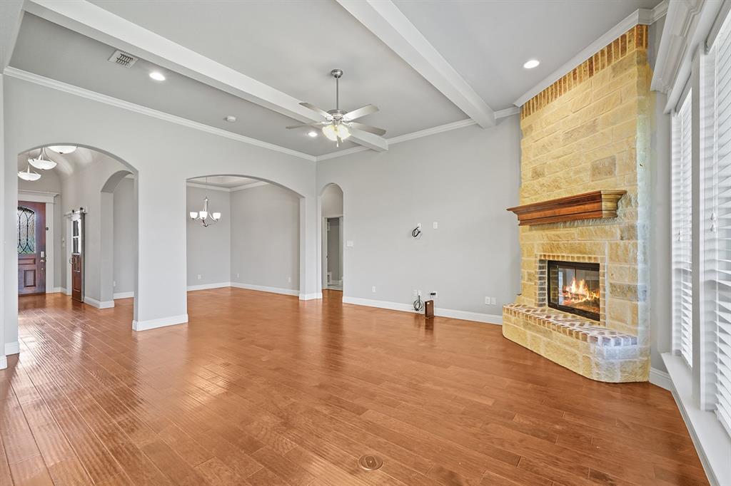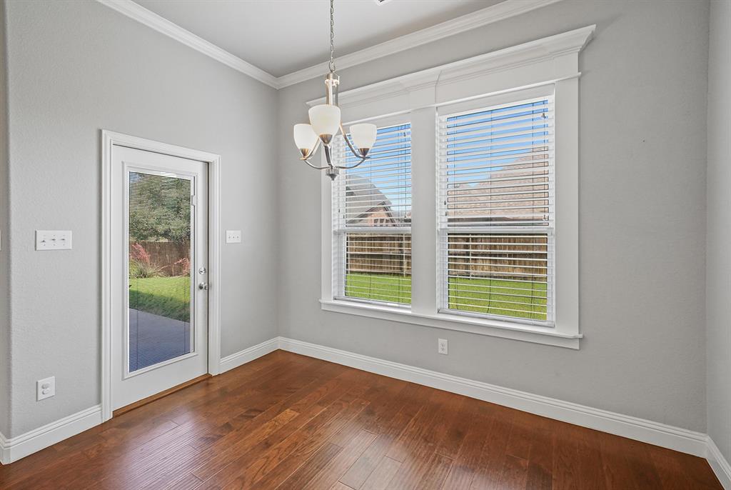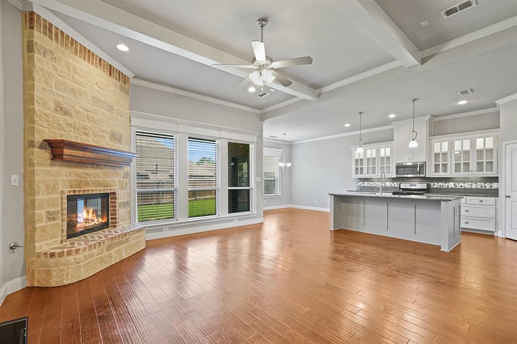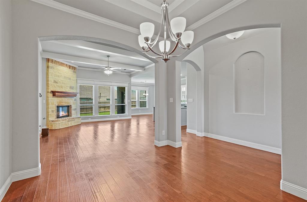 Welcome to your dream home, a beautifully custom-built residence that exudes elegance and functionality. Step inside to find engineered wood floors that flow seamlessly throughout the living room, hallways, office, dining room, kitchen, and breakfast area, creating a warm and inviting atmosphere.The heart of the home features a spacious open-concept design, where the full-size dining room effortlessly connects to the living room. Here, a stunning stone fireplace serves as a focal point, complemented by large windows that provide picturesque views of the backyard.The kitchen is a chef's delight, boasting custom shaker-style cabinets, granite countertops, a spacious working island with additional seating, a farmhouse sink, a custom tiled backsplash, and a dedicated wine rack. A small appliance garage keeps the space organized, while the adjoining breakfast area offers a cozy spot for morning meals.The master suite, tucked behind the living room for privacy, is generously sized and filled with natural light. It features separate vanities, dual walk-in closets, a luxurious soaking tub, and a beautifully tiled walk-in shower.Two additional bedrooms at the front of the house share a full bathroom, complete with granite countertops and a tiled shower combo, making it perfect for family or guests. A dedicated office space offers versatility, functioning as a playroom, second living room, or even an extra bedroom.Step outside to discover a covered back porch, ideal for outdoor entertaining, alongside a spacious backyard perfect for play or gardening. This custom home combines thoughtful design with high-quality finishes, making it a true sanctuary for modern living.Don’t miss the opportunity to make this exceptional property your own!