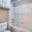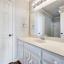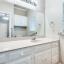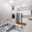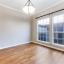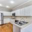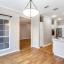 The spacious kitchen offers generous cabinetry and counter space, complete with a stainless steel sink and refrigerator. A sunny dining area with an updated light fixture makes mealtime feel special every day.