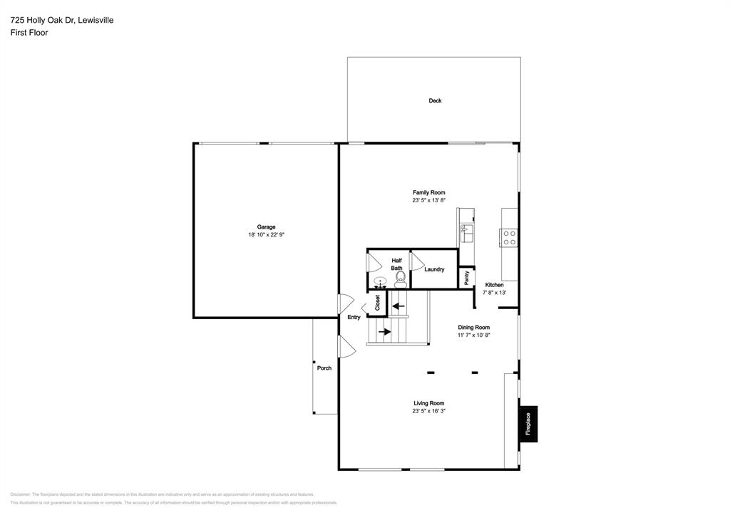 Welcome to 725 Holly Oak Dr, a 2 story brick home that is situated in the heart of Lewisville's Timberbrook neighborhood. Situated near Fox Creek Greenbelt Park and Central Park, with easy access to I-35 and HWY 121. As you step inside this home you'll come to the living room with high ceilings, plenty of windows for natural lighting and a fireplace with brick veneer from bottom to ceiling. This living room opens to the dining room area that features a bar area with a sink, and goes into the kitchen. The great room features the open family room, kitchen and breakfast area. This home offers 4 bedrooms 2.5 baths. All bedrooms are upstairs and they feature carpet flooring for extra comfort. The primary bedroom has a walk-in closet, large bathroom suite has large dual sink vanity, a shower with glass door, separate soaking tub. The outdoors offer fenced in backyard and a wooden deck.